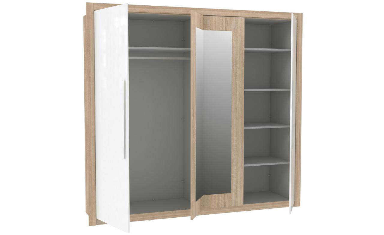 Szafa ubraniowa z serii JULIETTA w zestawieniu kolorystycznym dębu sonoma z białym połyskiem doskonale uzupełni każde pomieszczenie. Łagodne połączenie wybarwień, inspiruje do odkrywania tajemnic wyobraźni i głęboko ukrytych pokładów kreatywności.
