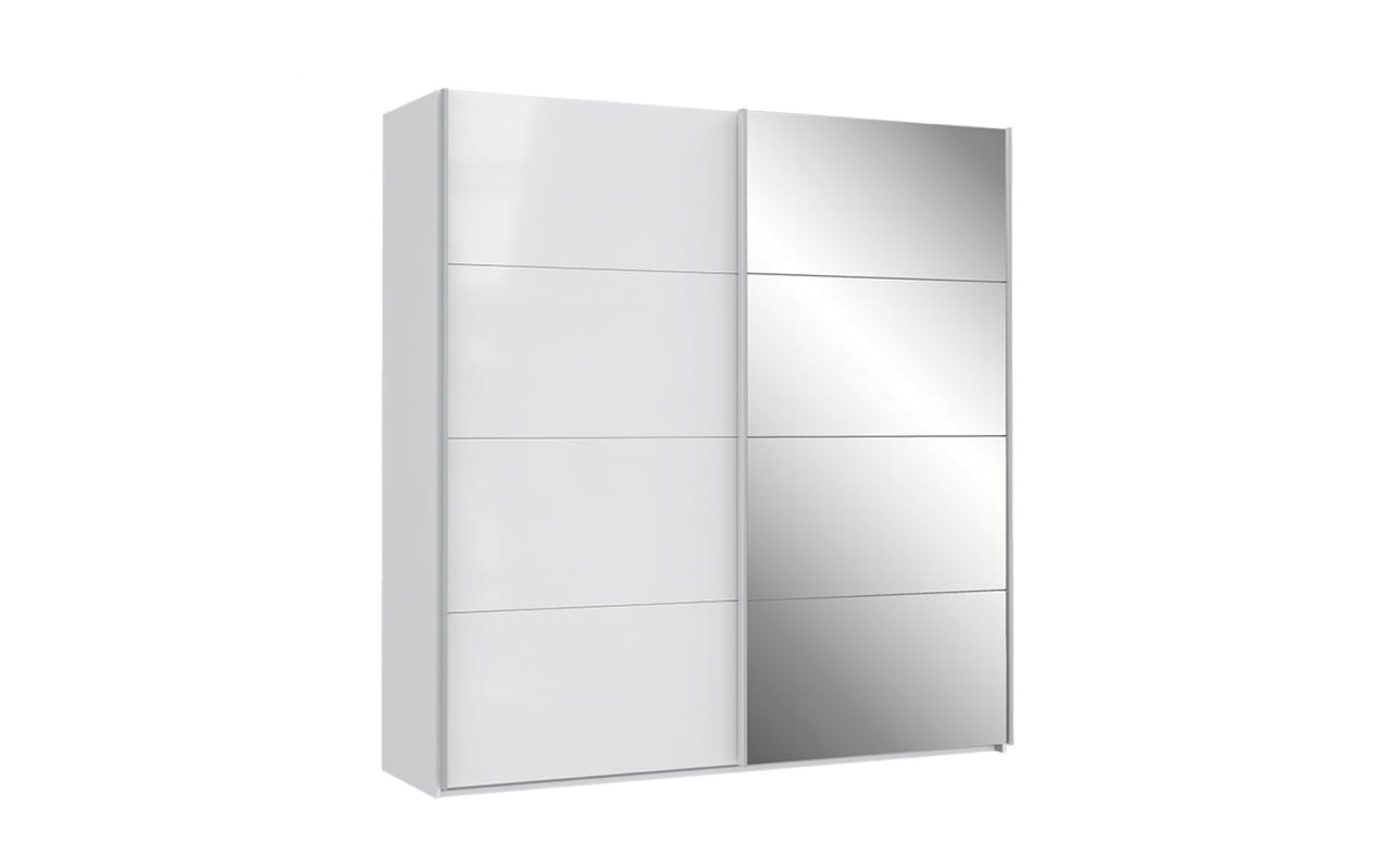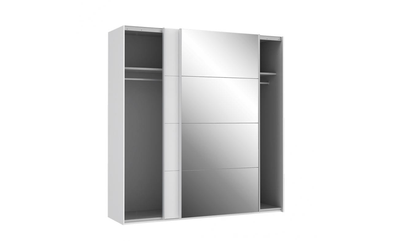 Funkcjonalne szafy SAPPORO znajdą zastosowanie zarówno w sypialni, przedpokoju, czy nawet pokoju nastolatka. Ich pojemność sprawia, że bez problemu zastąpią oddzielną garderobę i sprostają oczekiwaniom nawet kilku użytkowników. Lustrzane powierzchnie powiększą optycznie wnętrze, a białe połyskujące fronty, wprowadzając więcej światła, dodadzą mu lekkości. System drzwi przesuwnych zapewni płynne otwieranie, a dwupunktowe oświetlenie umieszczone w listwie okalającej podkreśli wyjątkowy charakter mebla. Każda z przestrzeni szaf wyposażona jest standardowo w górną półkę oraz drążek do zawieszenia ubrań. Szafy można dodatkowo uzupełnić o komplet półek, komody wewnętrzne oraz hamulec do drzwi.