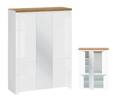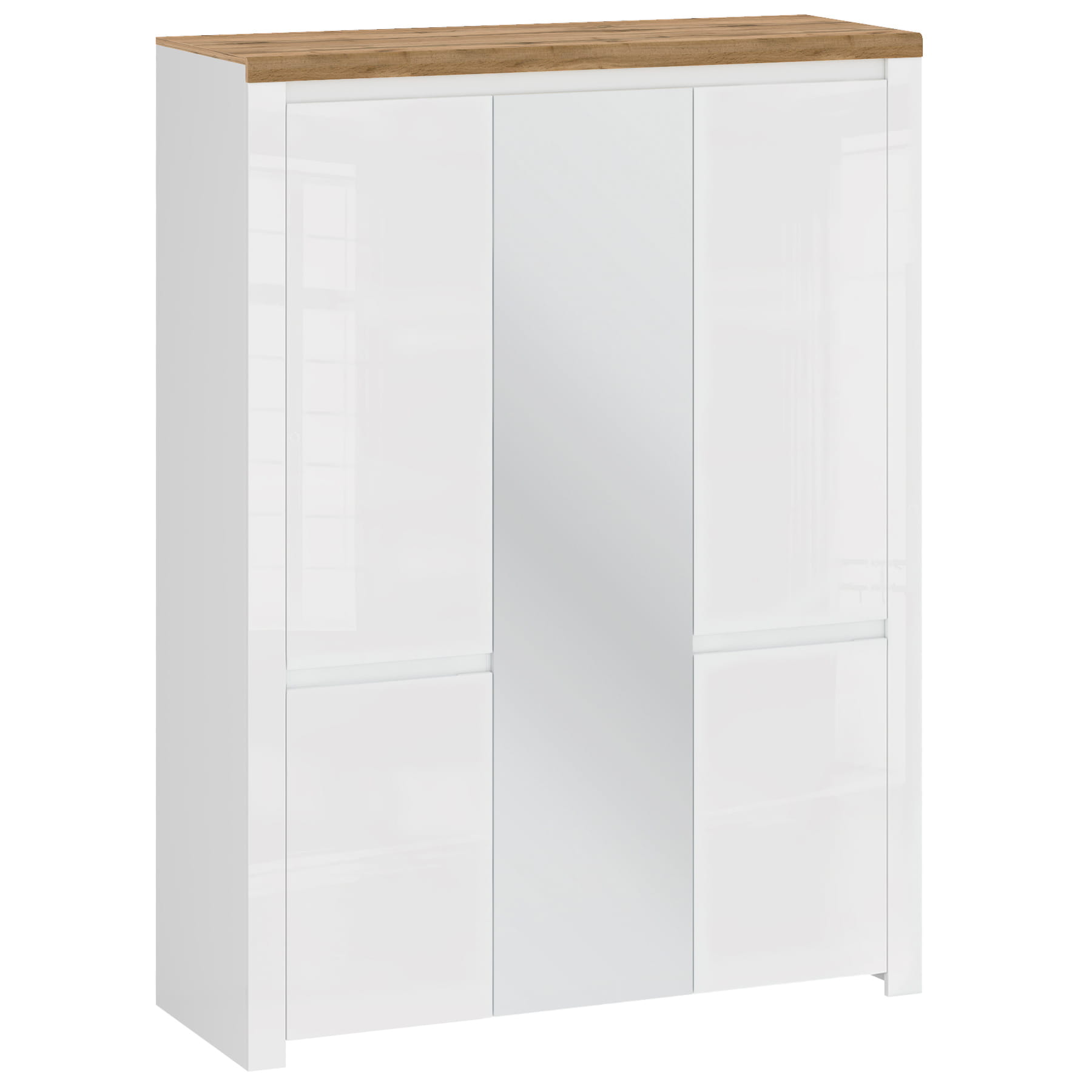 Szafa z lustrem 5d, biały połysk/dąb wotan, kolekcja Vigo