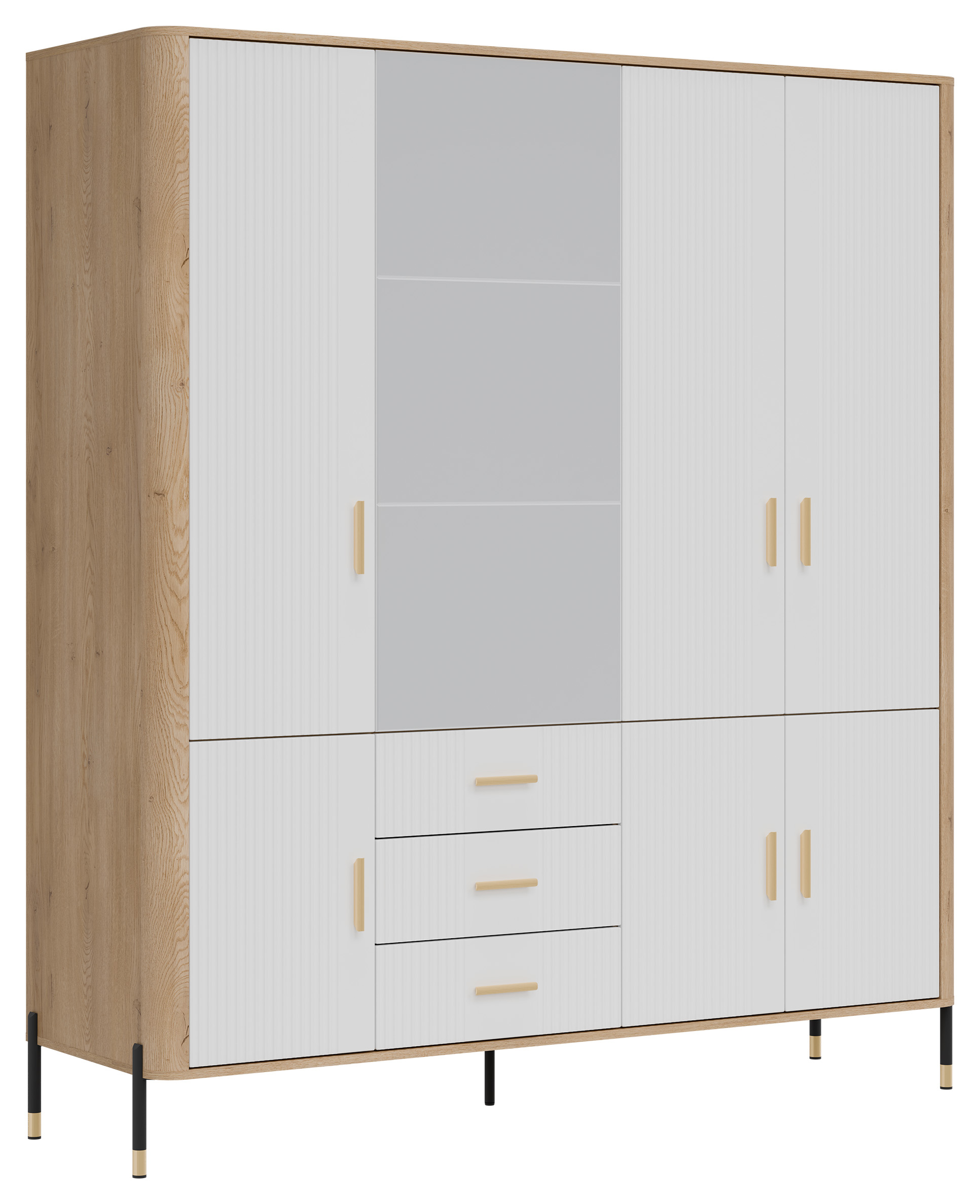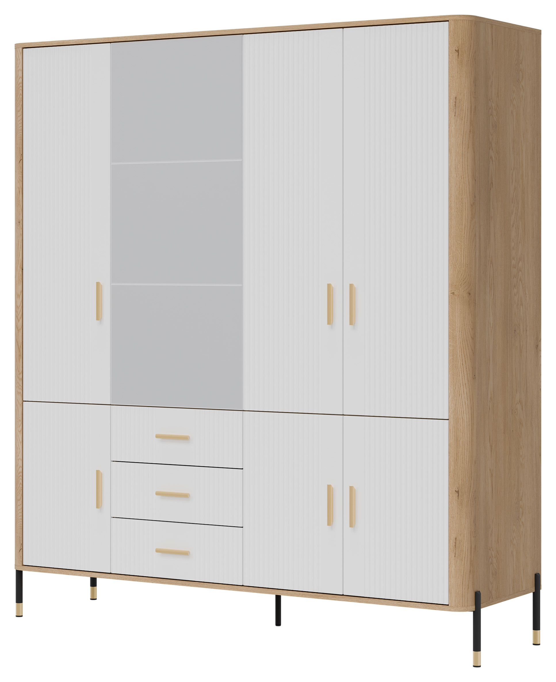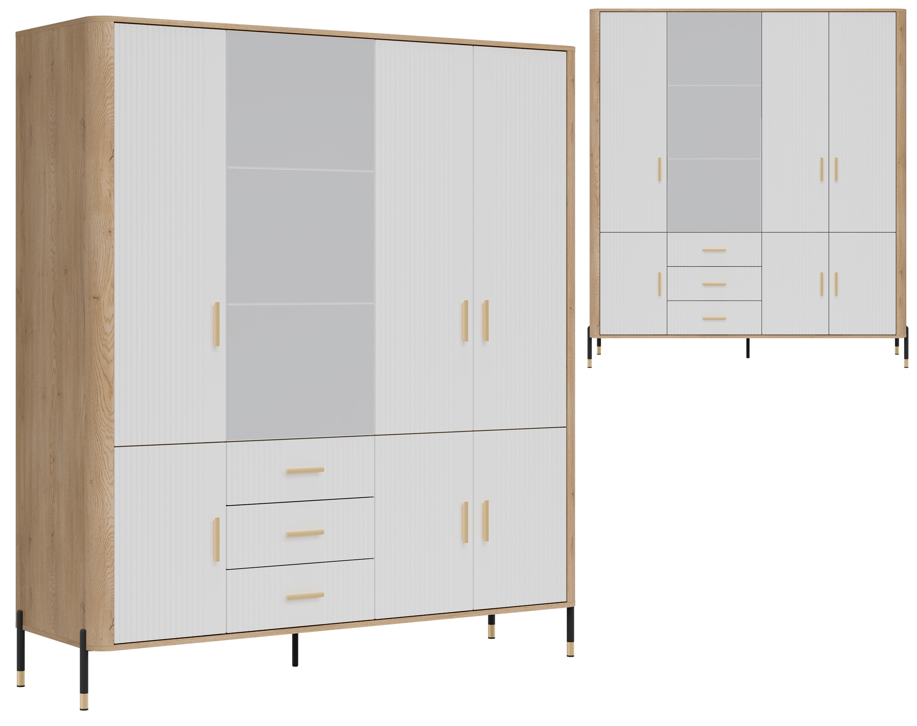Szafa z lustrem i szufladami pokojowa 185 cm Dąb Biały Złoty DANTE DT17