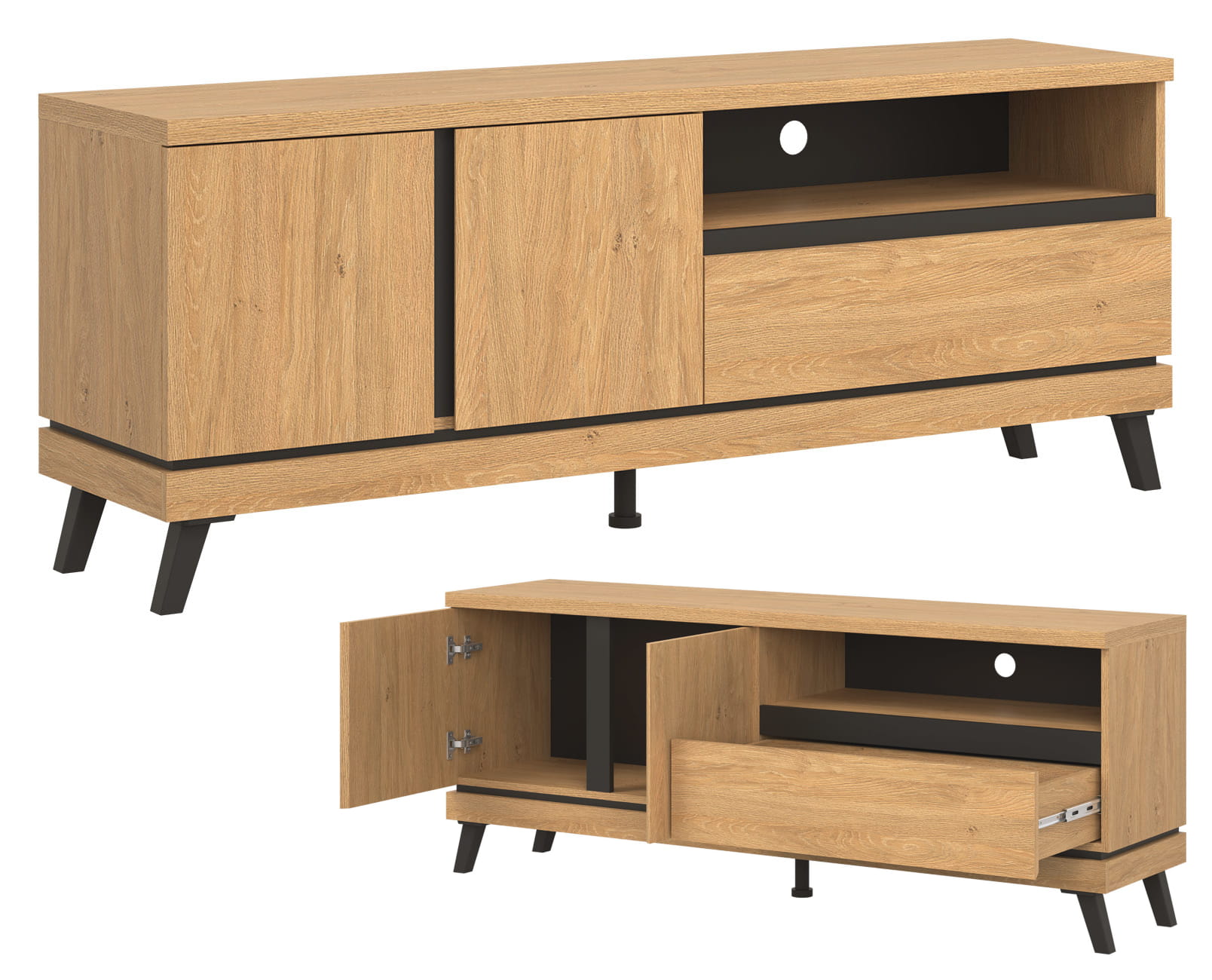Szafka RTV Komoda Stolik pod telewizor 160 cm dąb kamienny czarny ATE AT01