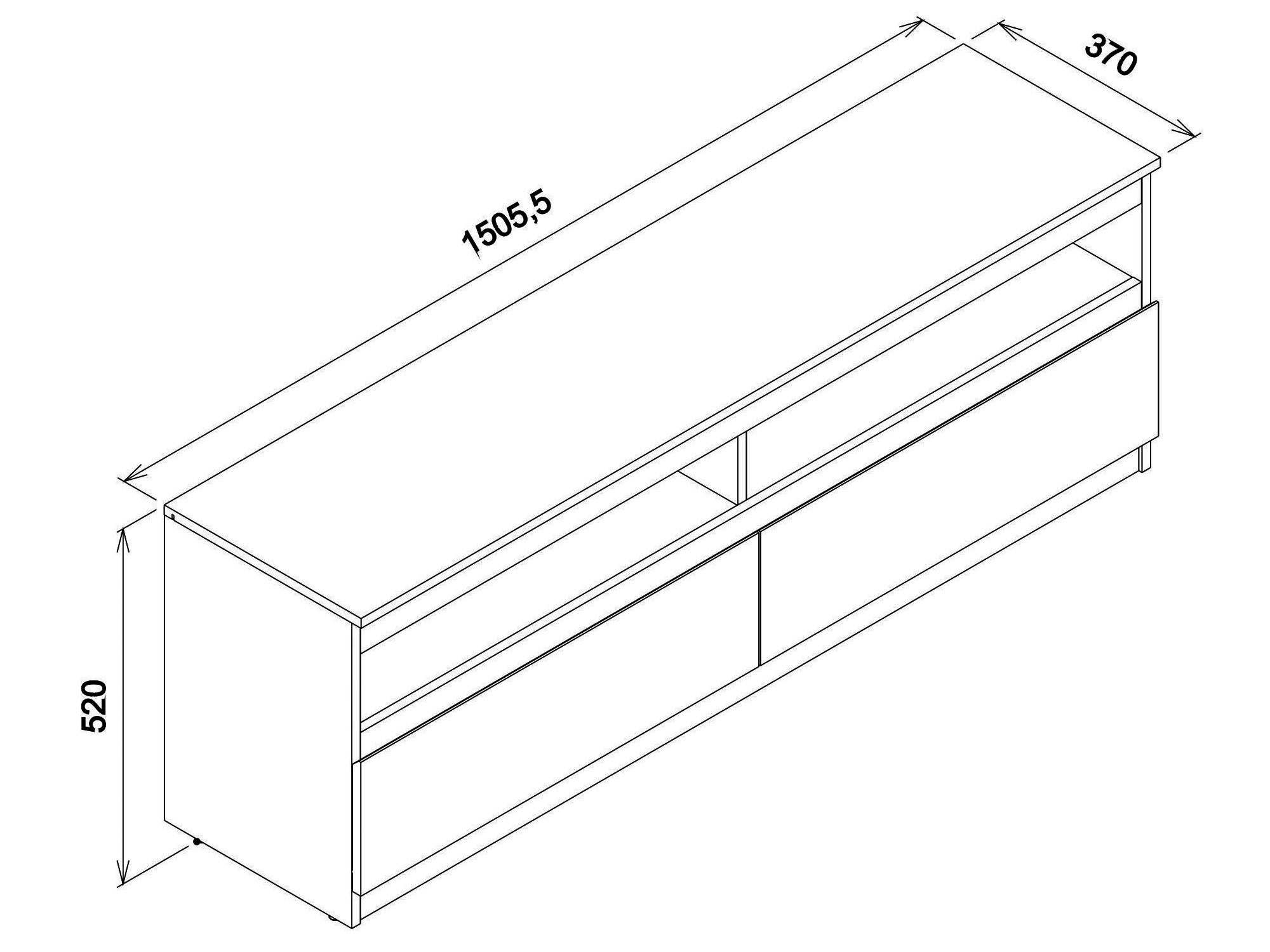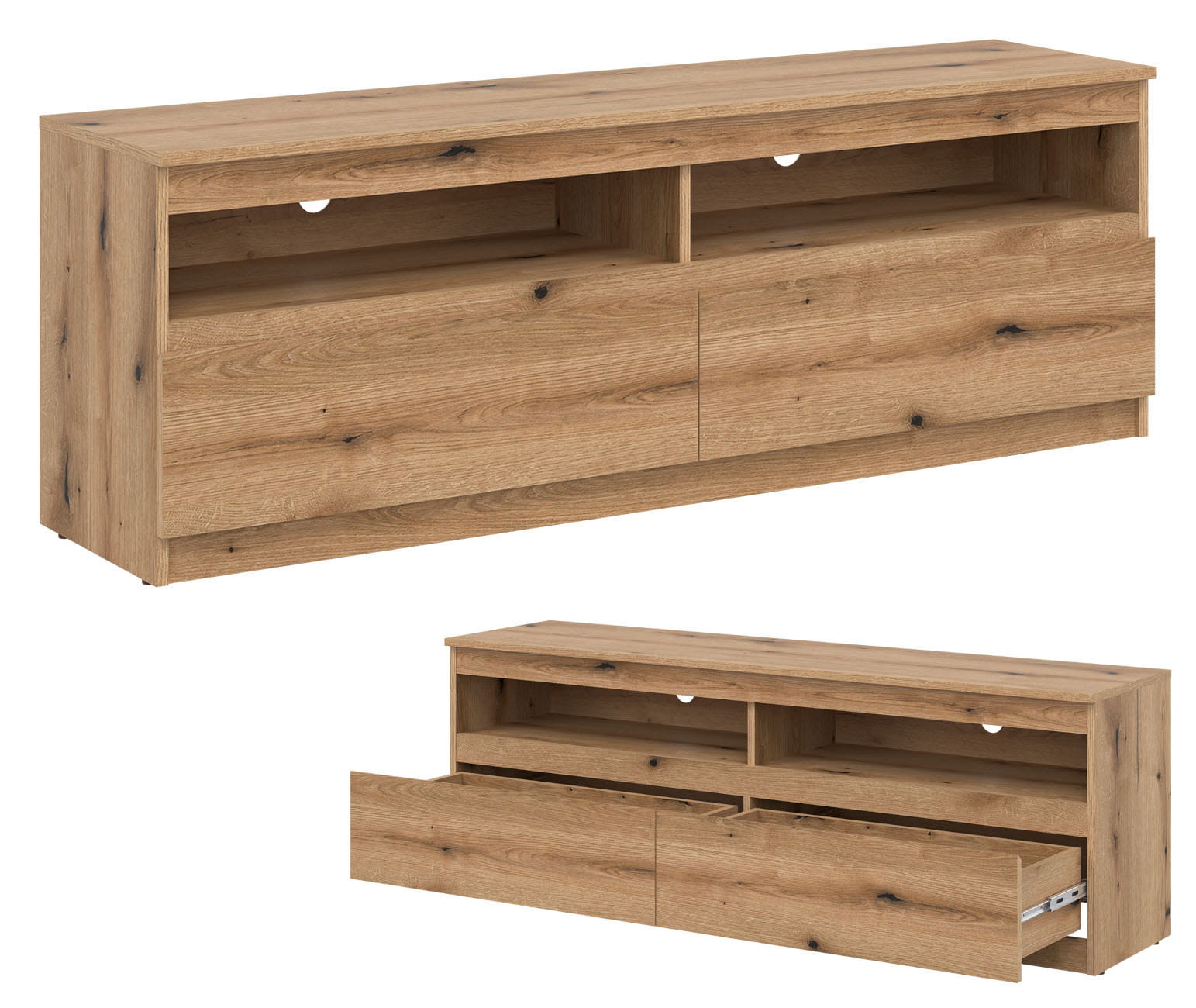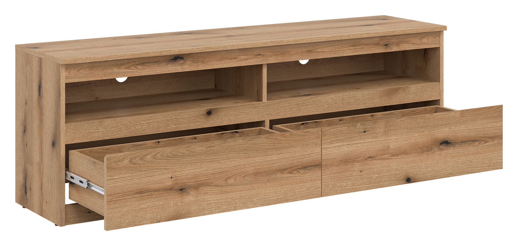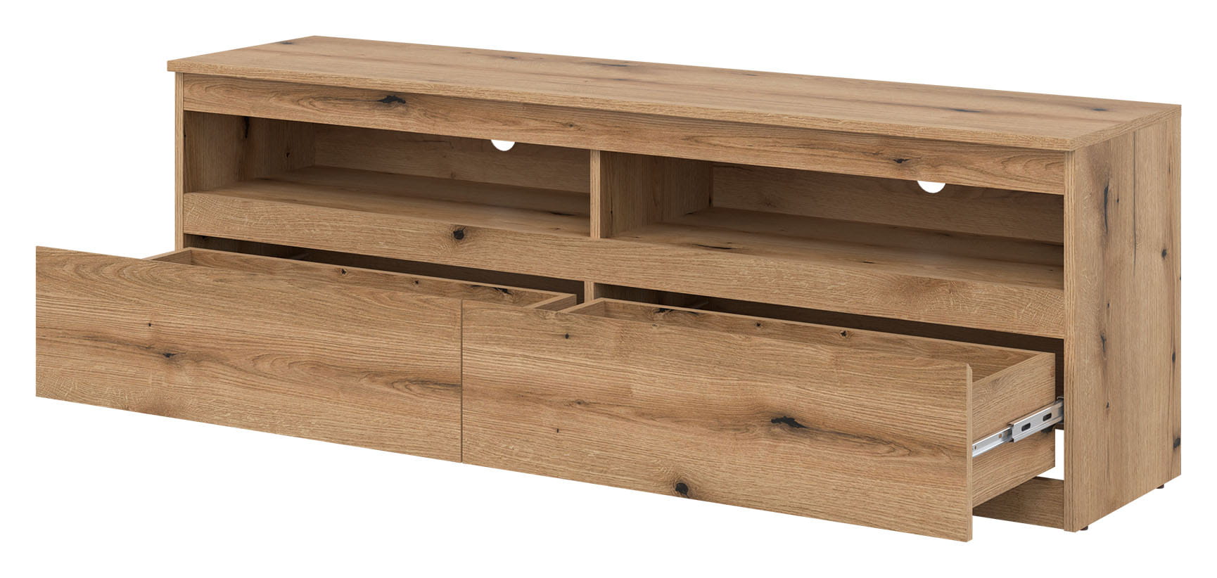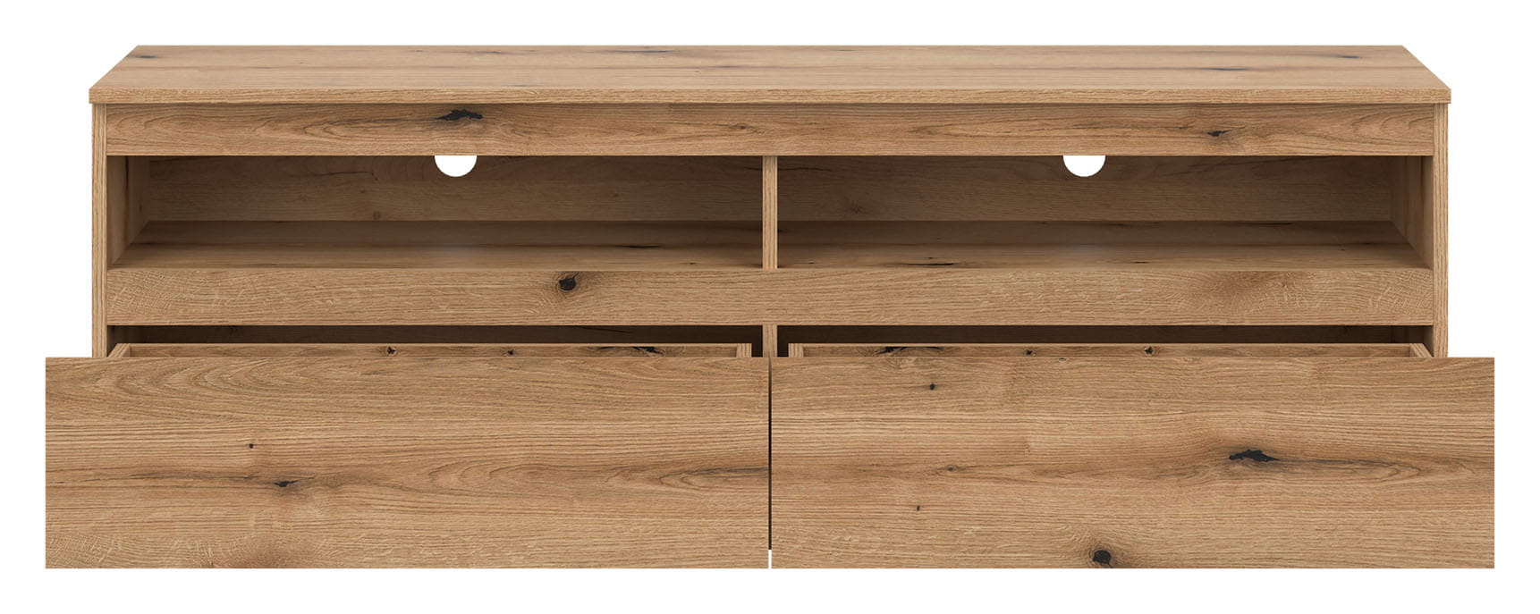 Mebel wyposażono w dwie wnęki otwarte na dekoder i konsolę oraz dwie szuflady wysuwane na solidnych prowadnicach kulkowych gwarantujących długotrwałą i bezawaryjną pracę.