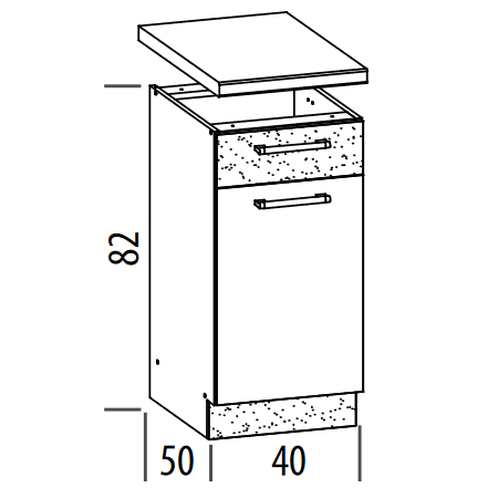 Szafka dolna L/P MD13/D40S1 to stojąca jednodrzwiowa szafka kuchenna z jedną półką w środku oraz jedną szufladą pochodząca z kolekcji mebli modułowych MODENA. Sprawdzi się idealnie w kuchni jako praktyczne miejsce służące do przechowywania sztućców oraz przyborów kuchennych.