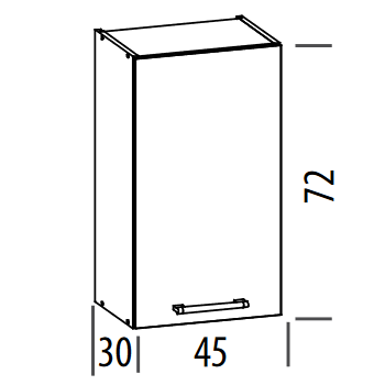 Szafka górna L/P MD4/G45 to wisząca jednodrzwiowa szafka kuchenna z dwoma półkami w środku pochodząca z kolekcji mebli modułowych MODENA. Sprawdzi się idealnie w kuchni jako praktyczne miejsce służące do przechowywania akcesoriów kuchennych czy produktów suchych i przypraw.