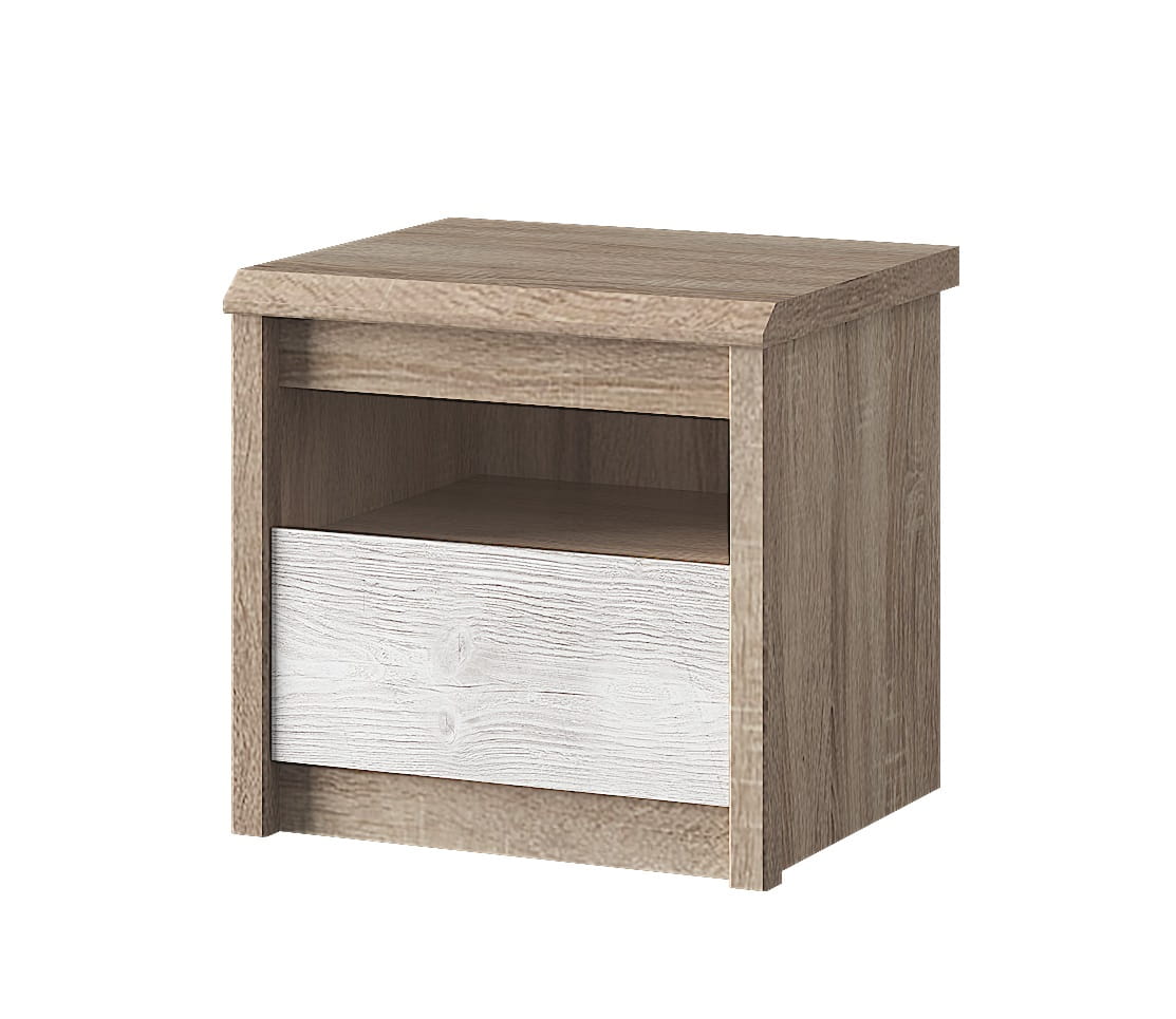 Szafka nocna 1S z kolekcji SOMMA idealnie sprawdzi się w każdej sypialni jako miejsce na lampkę nocną oraz inne drobiazgi. Szafka posiada też pojemna szufladę, do której klient otrzymuje dwa fronty w różnej kolorystyce, dzięki temu każdy może dowolnie dopasować ją do swoich gustów oraz wnętrza sypialni. Szafka wkomponuje się w każdą przestrzeń, ale też dopełni całość jako część kolekcji SOMMA