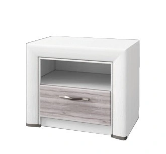 W pełni umeblowana sypialnia musi być wyposażona w szafki nocne. Bryła z kolekcji OLIVIA posiada szufladę oraz otwartą półkę, które potrzebne są na wszelkie drobiazgi niezbędne przed snem. Blat sprawdzi się jako miejsce, na którym spocznie tradycyjny zegarek z budzikiem lub mała lampka nocna. Prowadnice szuflady o pełnym wysuwie zwiększają komfort korzystania z szafki.