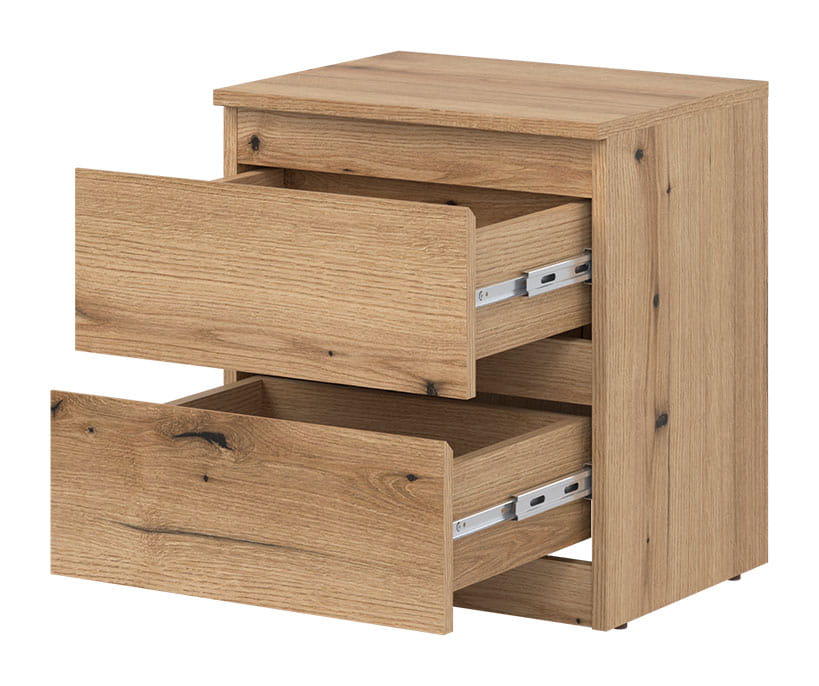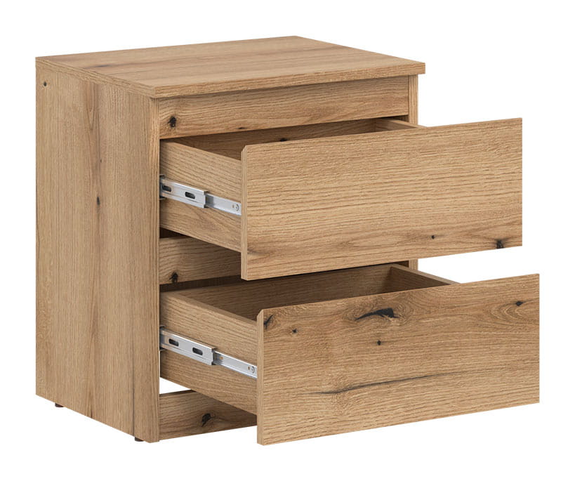 Mebel wyposażono w dwie szuflady wysuwane na solidnych prowadnicach kulkowych gwarantujących długotrwałą i bezawaryjną pracę.