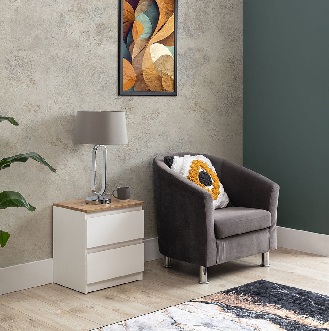 Mebel został wykonany z wysokiej jakości płyty laminowanej, którą cechuje trwałość i odporność na czynniki mechaniczne oraz bezpieczeństwo użytkowania. Dodatkowym wzmocnieniem boków jest wytrzymałe obrzeże ABS.