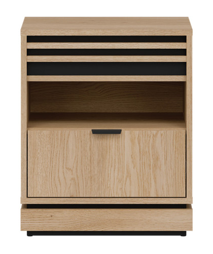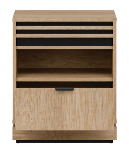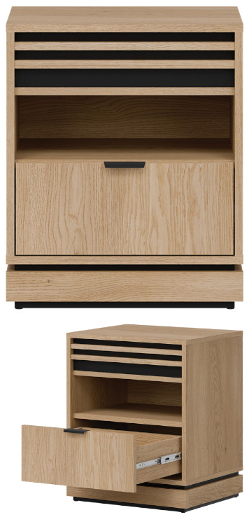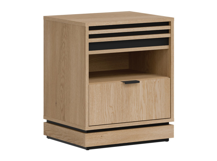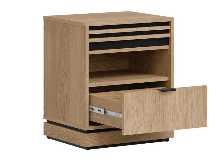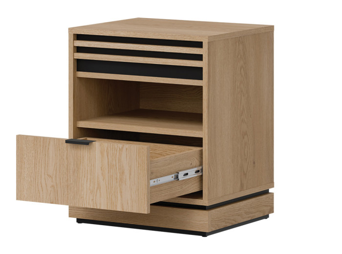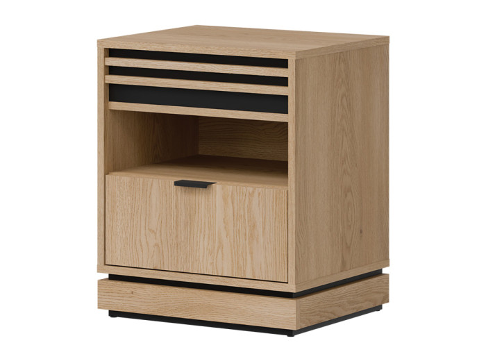Szafka nocna z szufladą Stolik z lamelami Dąb Cremona Czarny FERRO FE19