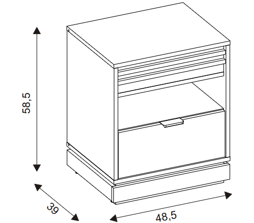 Szafka nocna Ferro FE19 stanowi eleganckie i praktyczne uzupełnienie łóżka z tej samej kolekcji. Wyposażona w szufladę i półkę, zapewnia wygodne miejsce do przechowywania najpotrzebniejszych rzeczy w zasięgu ręki, takich jak telefon, książka czy lampka nocna.