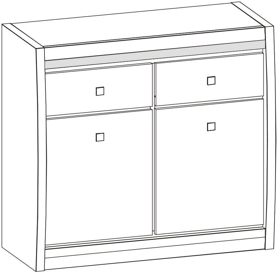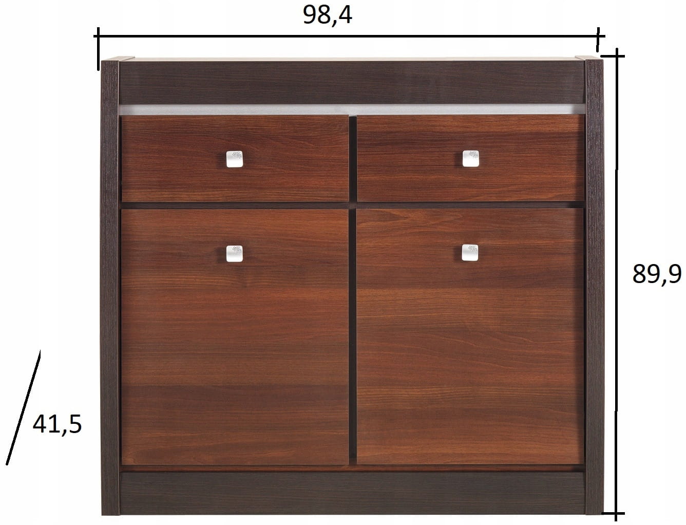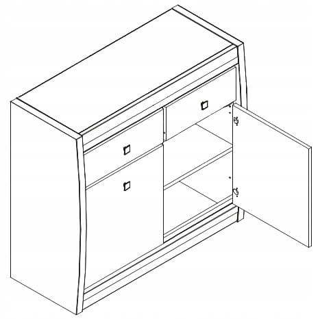 Mebel składa się z dwóch szuflad wysuwanych na prowadnicy rolkowej oraz dwóch szafek, co umożliwia segregację rzeczy w taki sposób, aby jak najbardziej ułatwić ich znajdowanie. Za dwoma drzwiczkami znajdują się cztery wnęki.