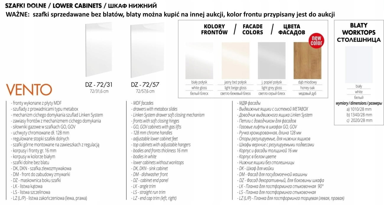 Prezentowana szafki która w połączeniu z innymi elementami z Systemu VENTO dopasuje się do każdej kuchni w nowoczesnym stylu. System występuje w czterech wariantach kolorystycznych.