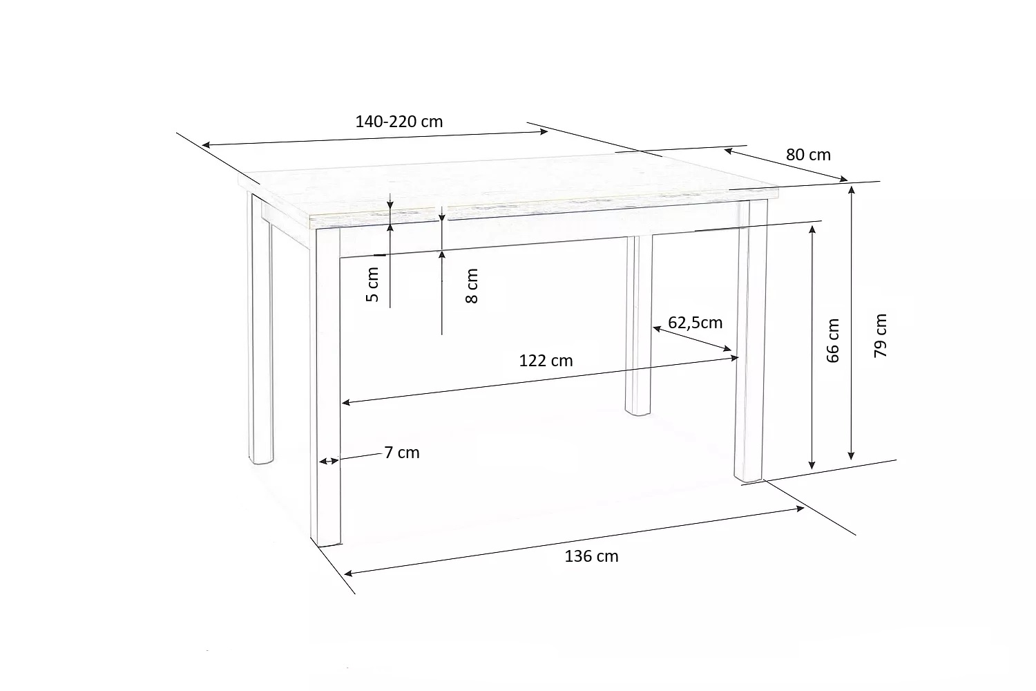 TIAGO 2 stół rozkładany 140-220/80 blat: biały, nogi: biały (3p=1szt)