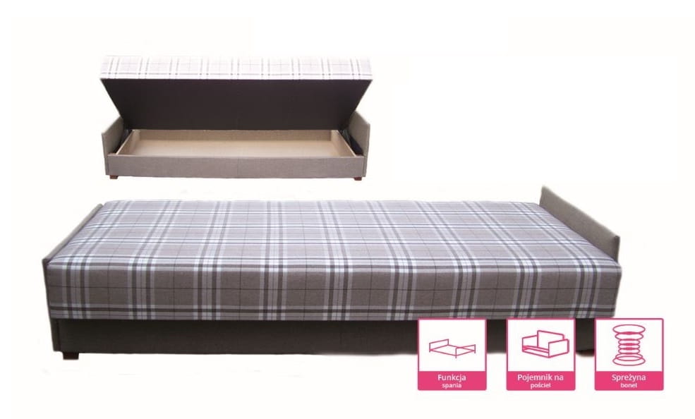 Co jeszcze sprawia, że nasz mebel pomoże Ci zagospodarować przestrzeń w Twoim domu? Tapczan posiada łatwo dostępny pojemnik na pościel, który pomoże Ci w utrzymaniu porządku w Twoim mieszkaniu.