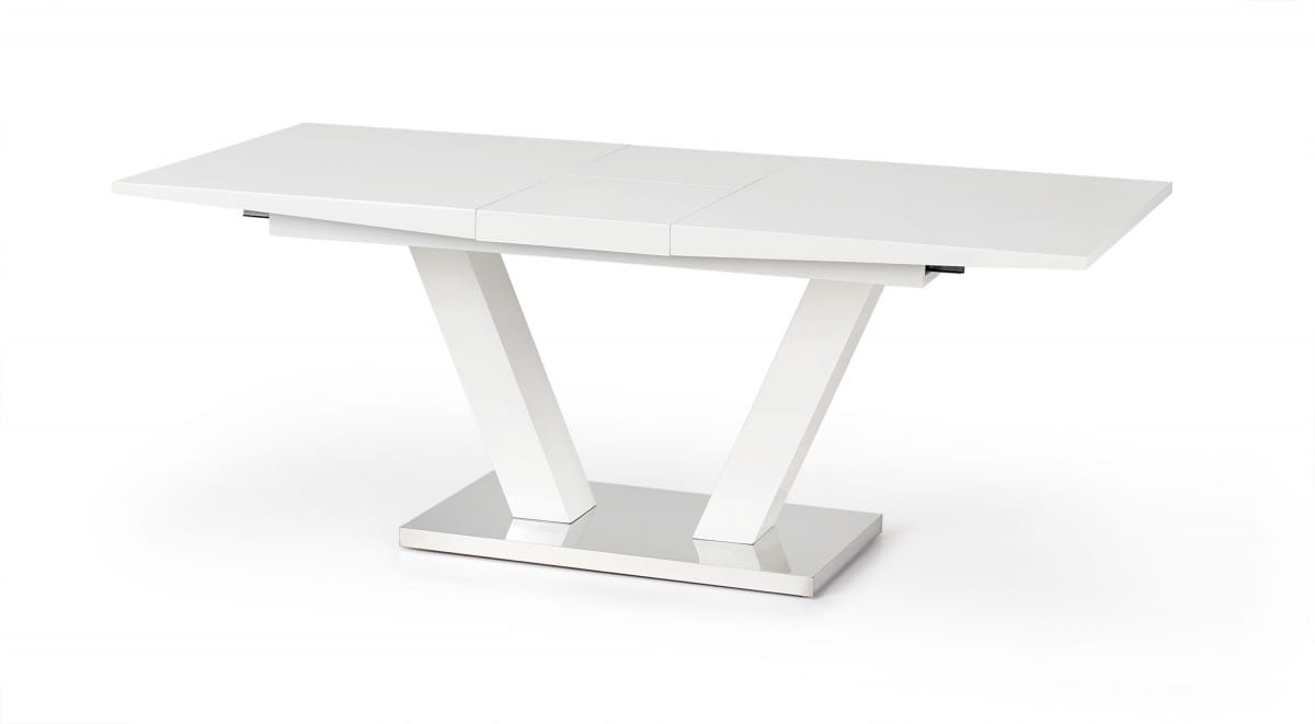Prezentowany stół jest odpowiedzią dla wszystkich miłośników minimalistycznego wzornictwa, którzy równocześnie poszukują praktycznych rozwiązań dla swojego wnętrza. Oszczędność kształtów i uniwersalna kolorystyka rekompensowane są tutaj wyjątkowym zestawieniem zastosowanych materiałów. Dobra informacja dla fanów mebli o wysokich walorach praktyczno-użytkowych – stół jest rozkładany.