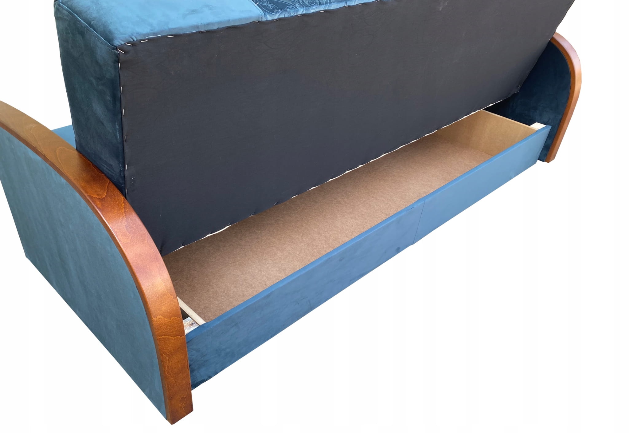 Solidny mechanizm rozkładania przytwierdzony do drewnianej ramy za pomocą śrub sprawia, że mebel rozkłada się bezproblemowo, a konstrukcja mebla jest niezwykle wytrzymała i stabilna.