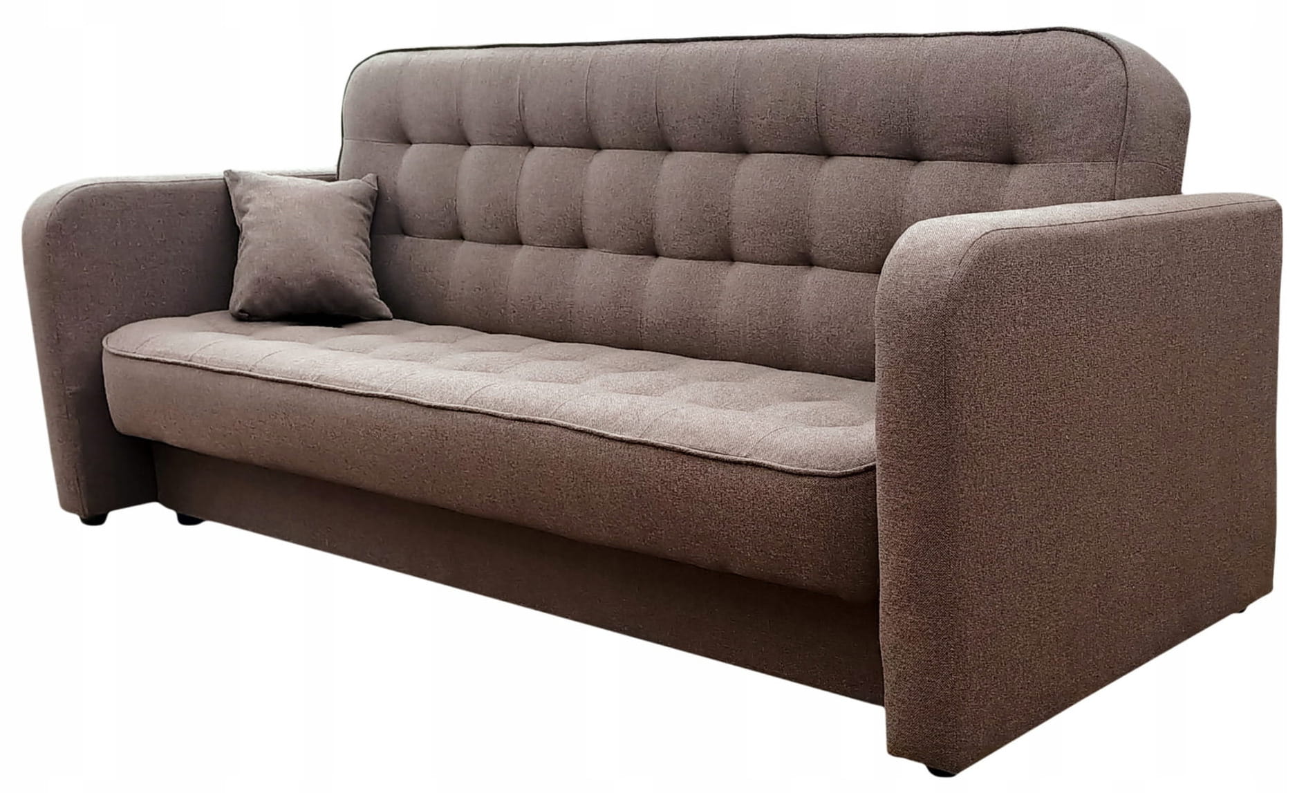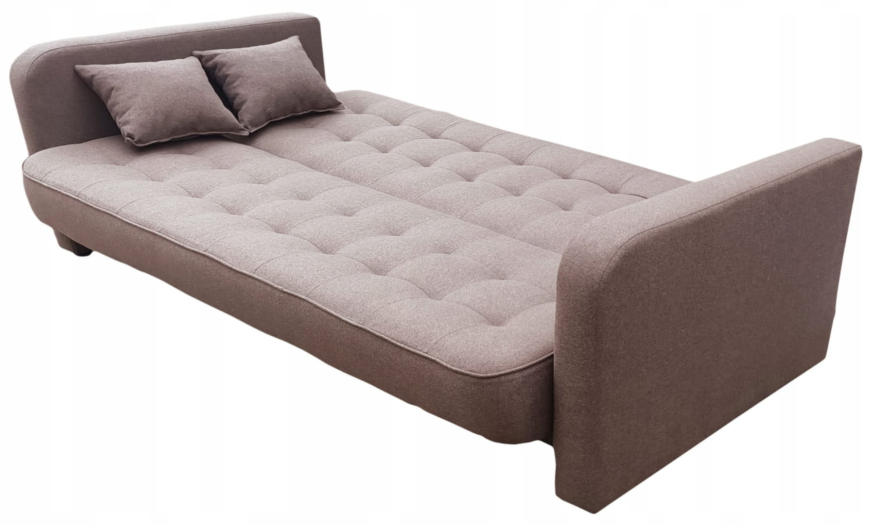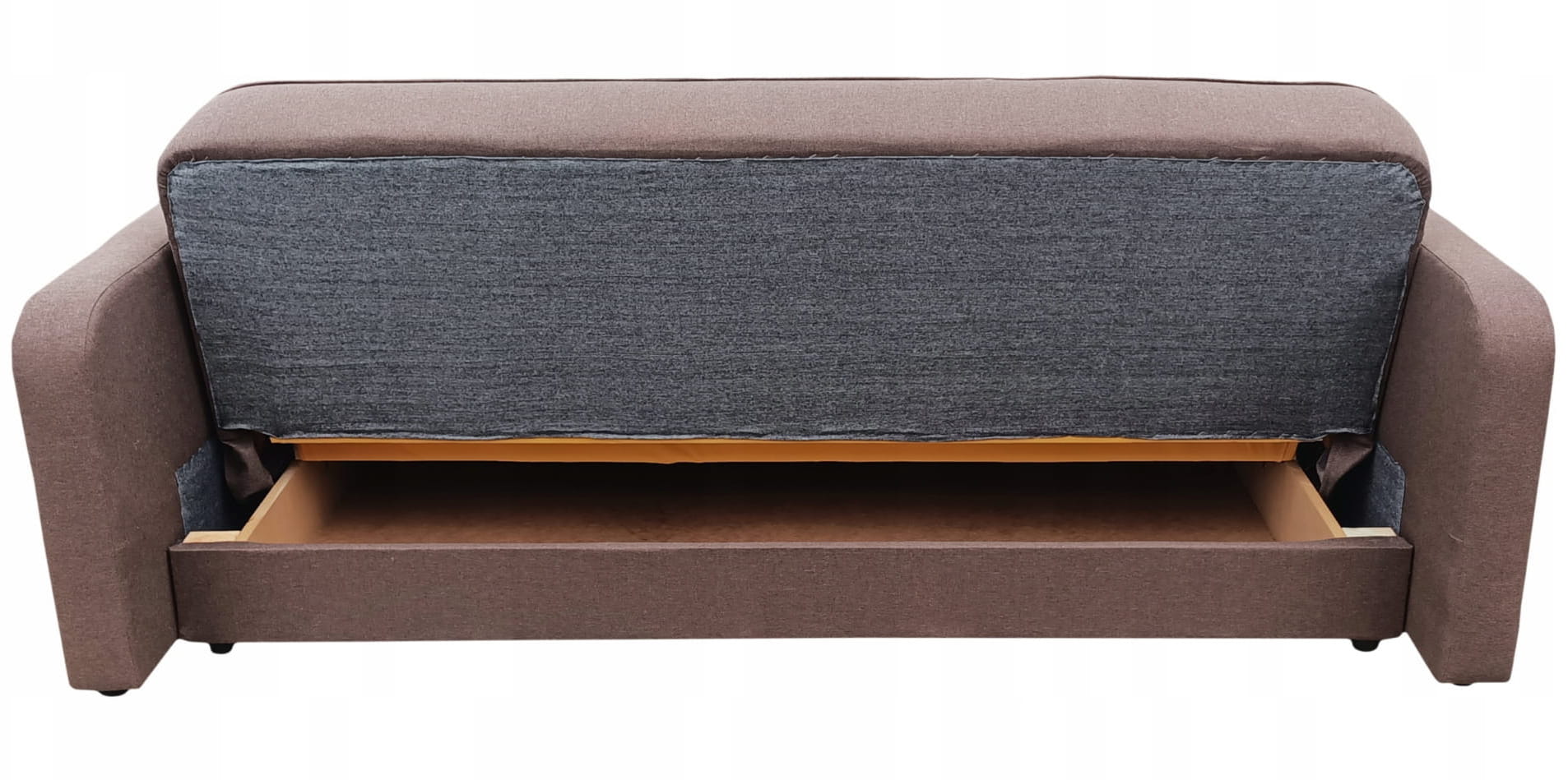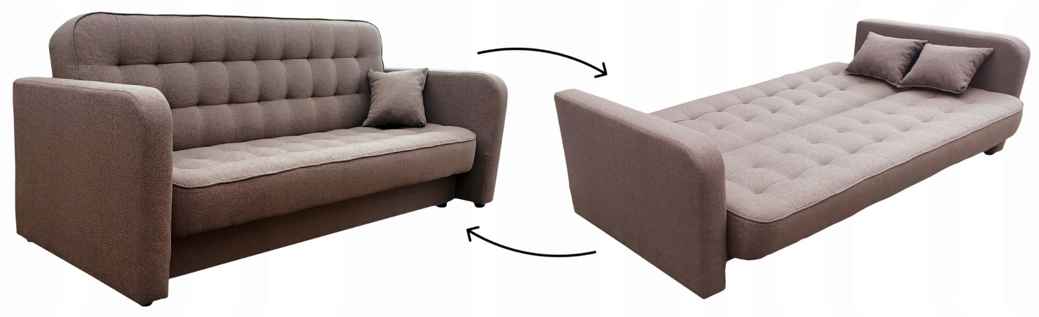 Solidny mechanizm rozkładania przytwierdzony do drewnianej ramy za pomocą śrub sprawia, że mebel rozkłada się bezproblemowo, a konstrukcja mebla jest niezwykle wytrzymała i stabilna.