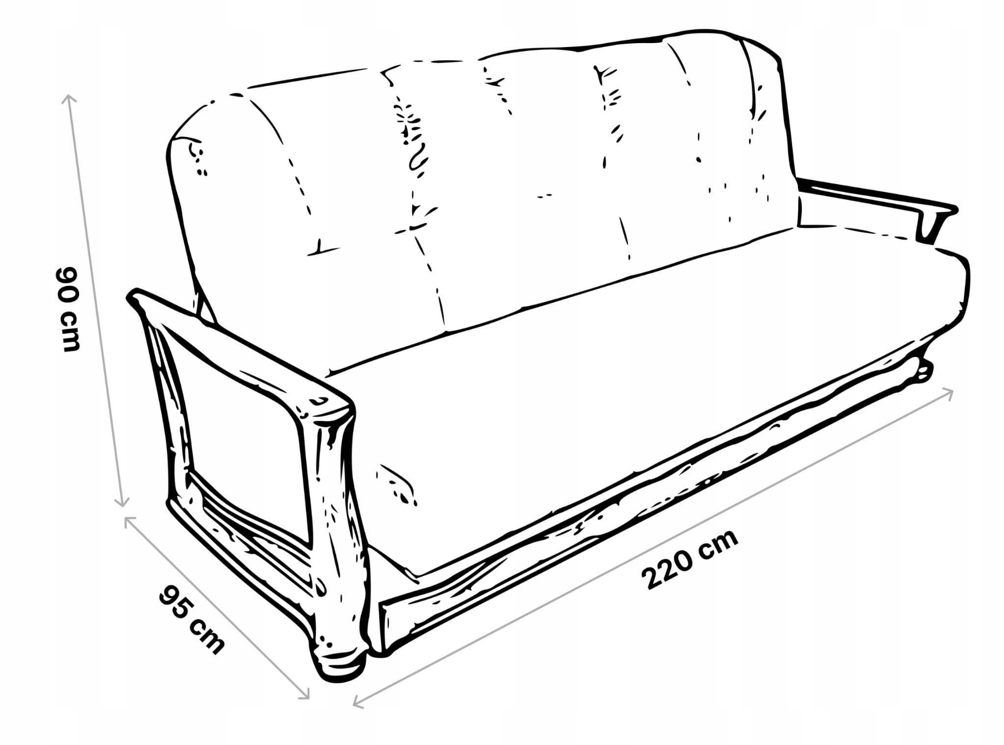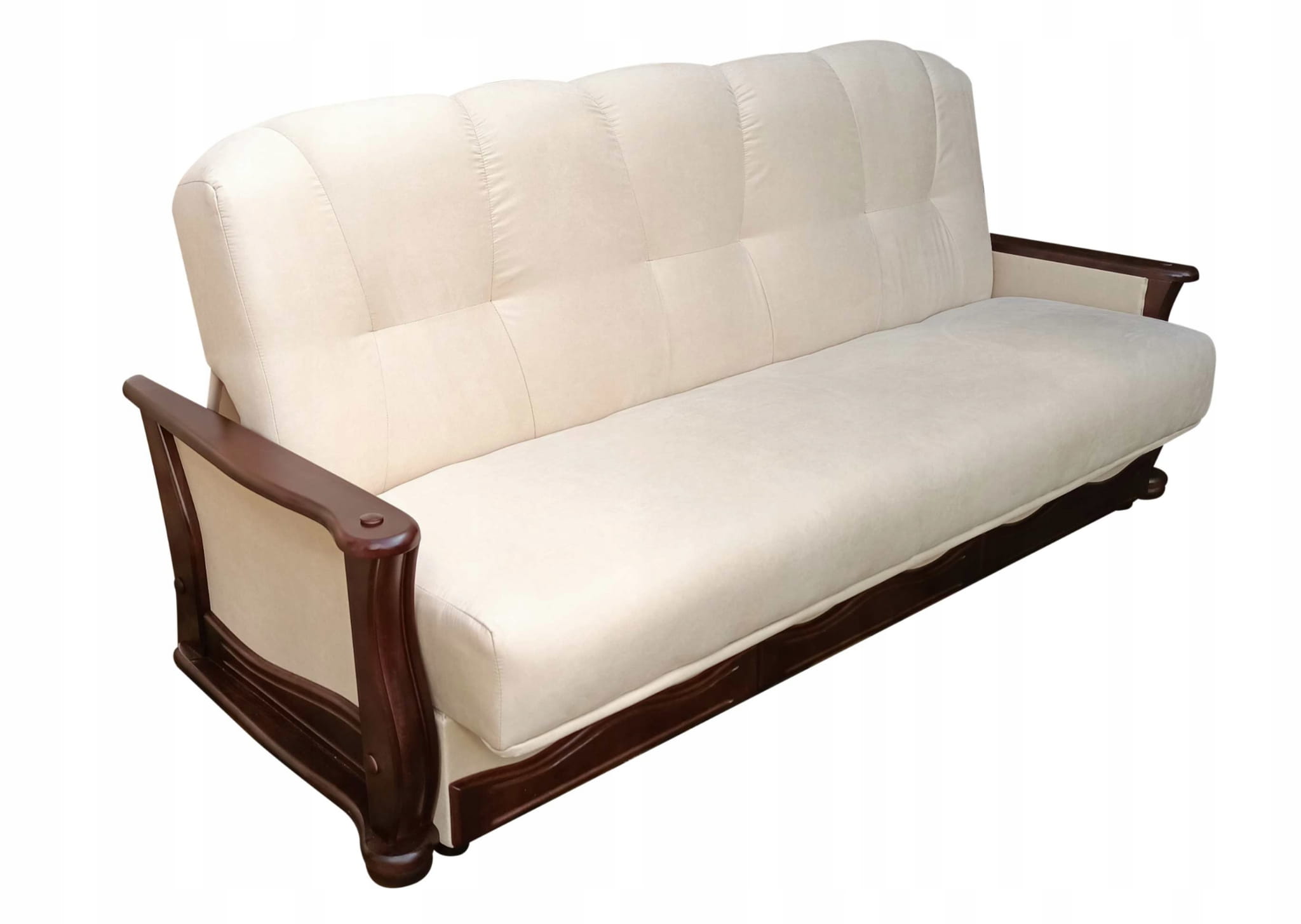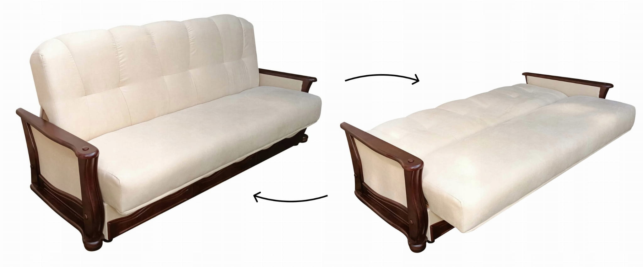 Solidny mechanizm rozkładania przytwierdzony do drewnianej ramy za pomocą śrub sprawia, że mebel rozkłada się bezproblemowo, a konstrukcja mebla jest niezwykle wytrzymała i stabilna.
