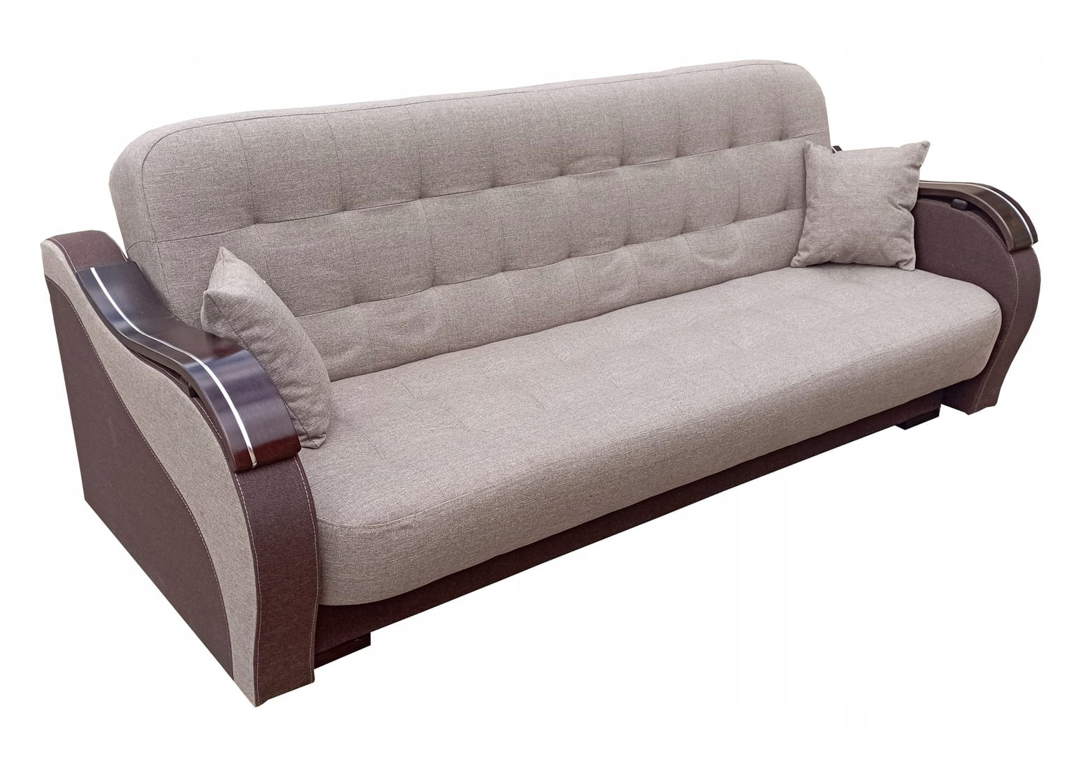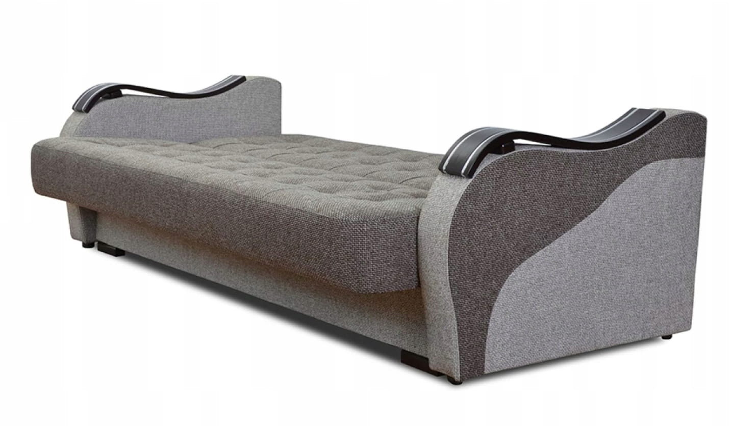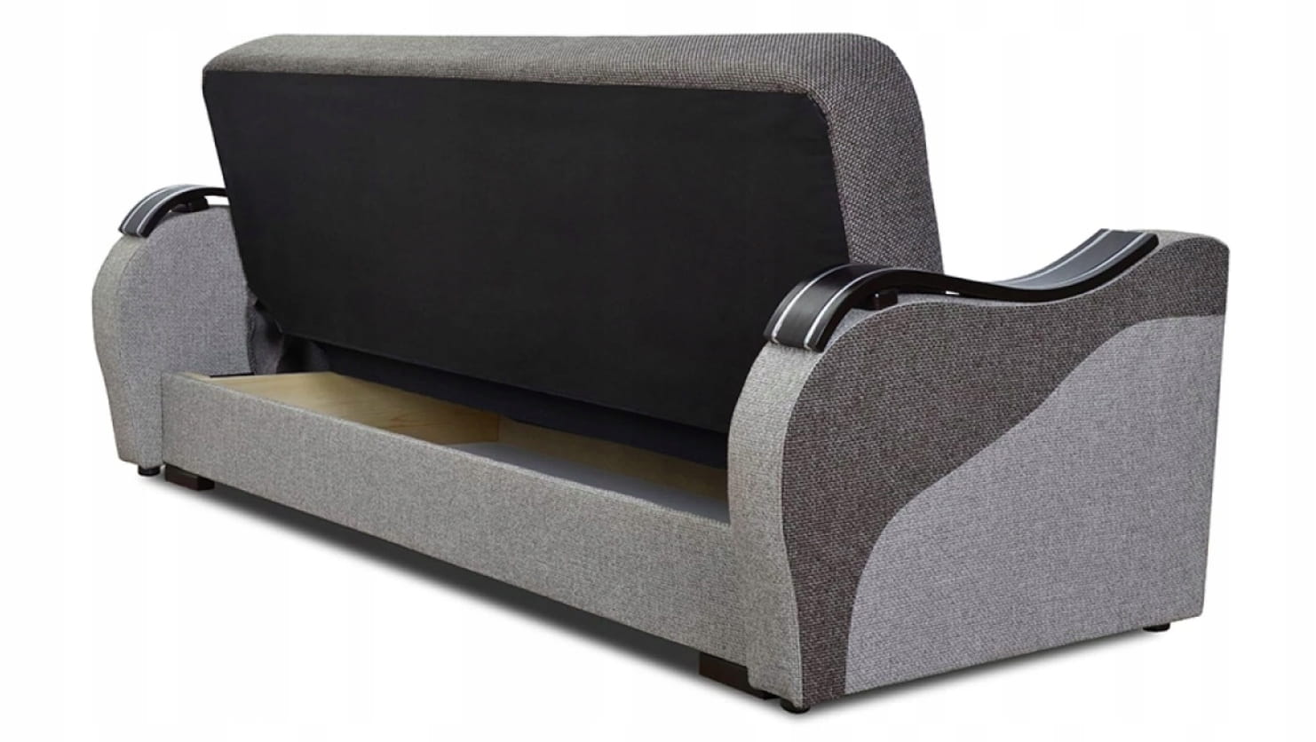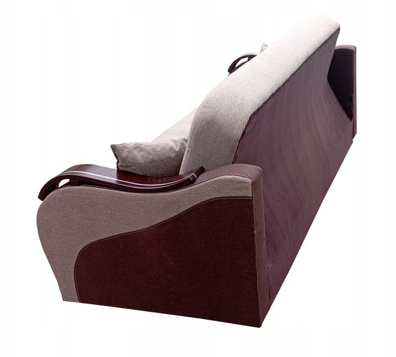 Solidny mechanizm rozkładania przytwierdzony do drewnianej ramy za pomocą śrub sprawia, że mebel rozkłada się bezproblemowo, a konstrukcja mebla jest niezwykle wytrzymała i stabilna.