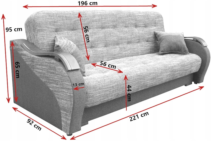Kolejną zaletą wersalki jest mechanizm rozkładania Click-Clack, dzięki któremu otrzymasz powierzchnie spania równą 114x196 cm. Bardzo praktyczny okaże się pojemnik na pościel, w którym znajdziesz miejsce na kołdrę czy poduszkę.