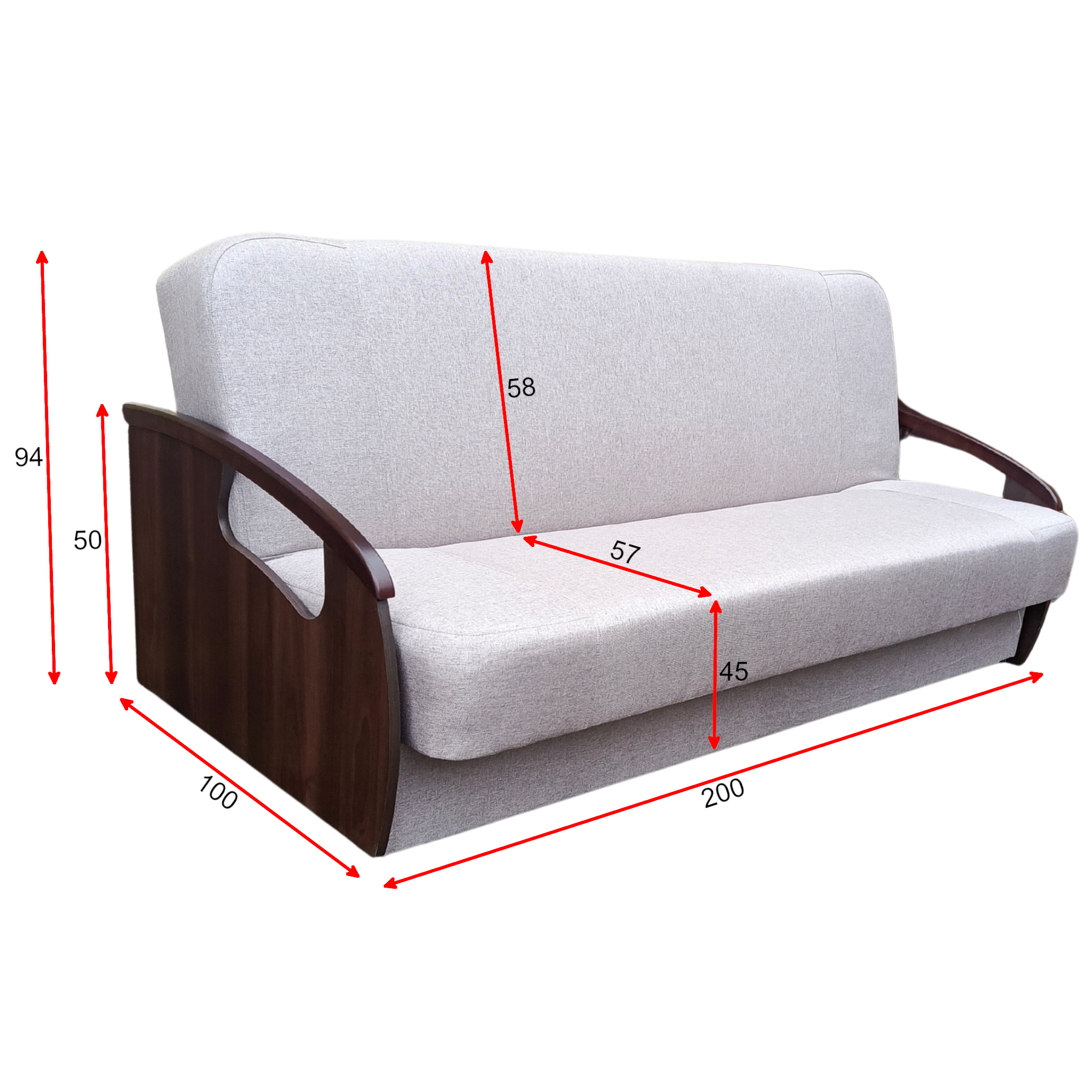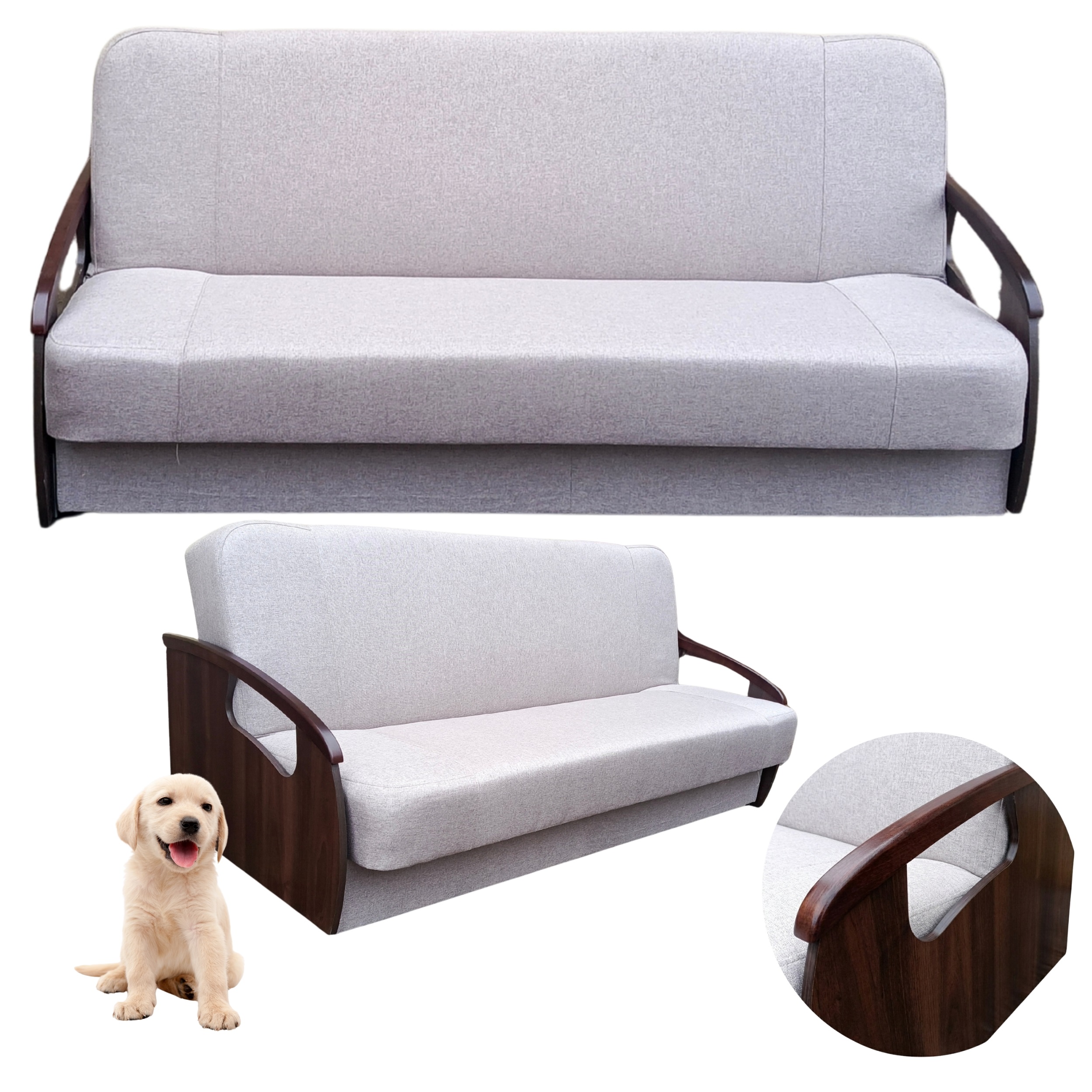 Wersalka rozkładana z drewnianymi bokami do pokoju 200 Sofa Kanapa Laminat