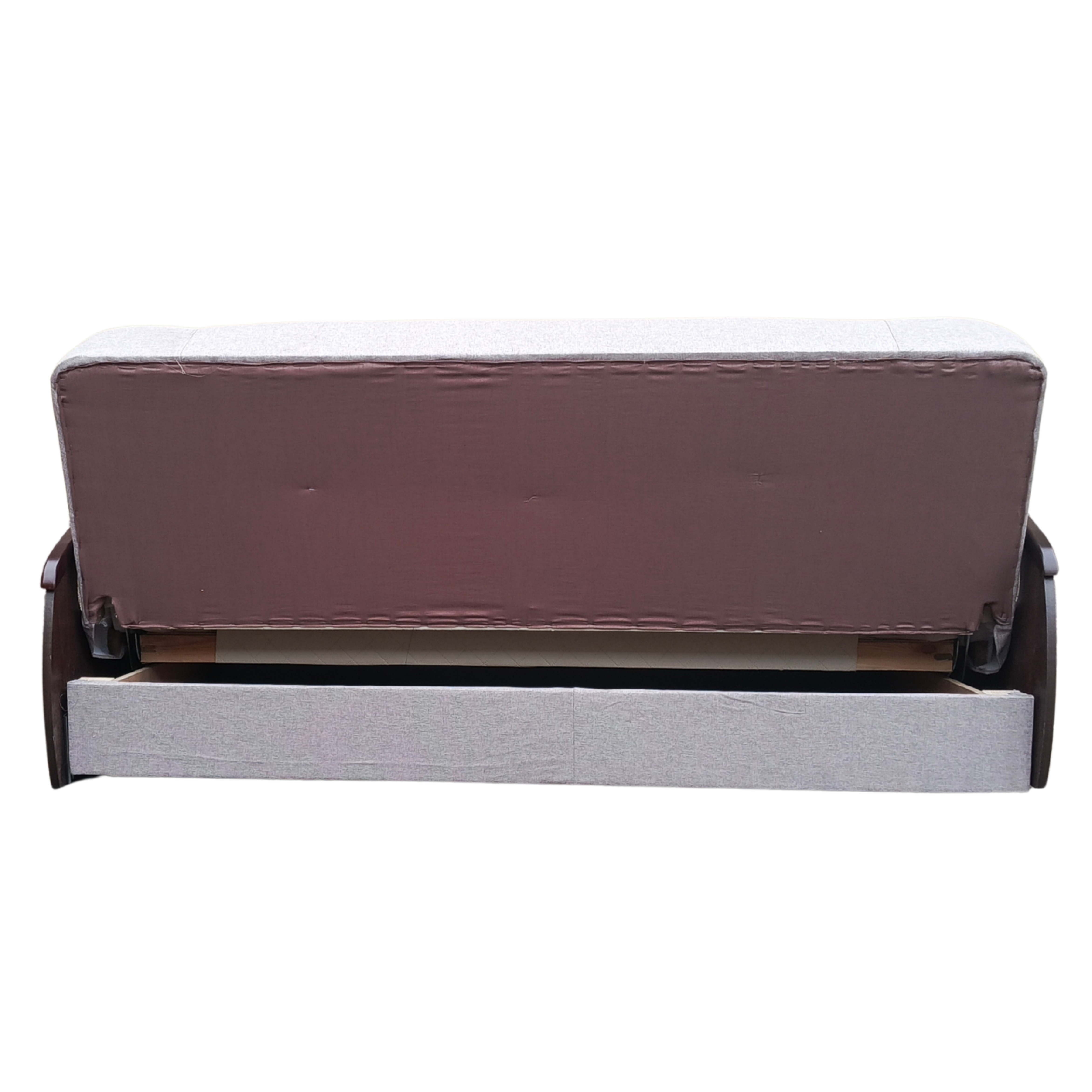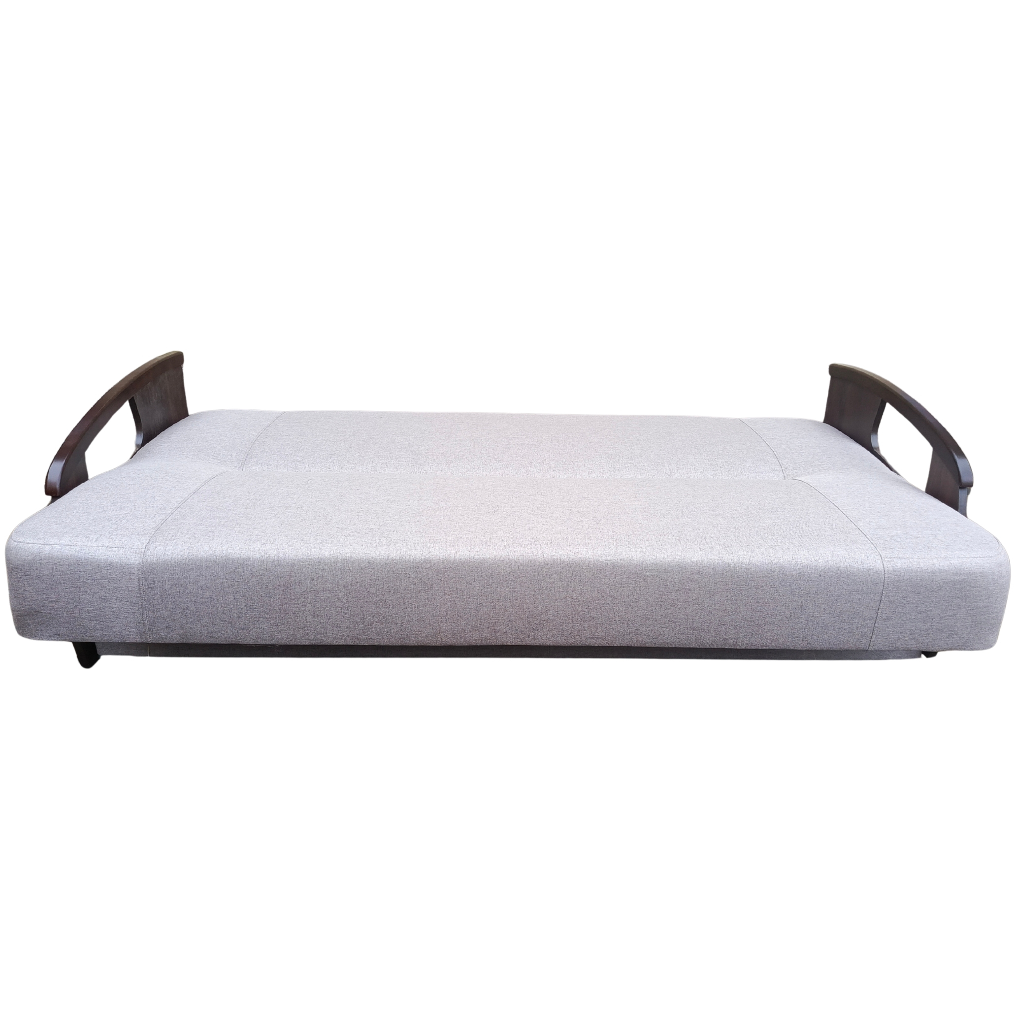 Solidny mechanizm rozkładania przytwierdzony do drewnianej ramy za pomocą śrub sprawia, że mebel rozkłada się bezproblemowo, a konstrukcja mebla jest niezwykle wytrzymała i stabilna.