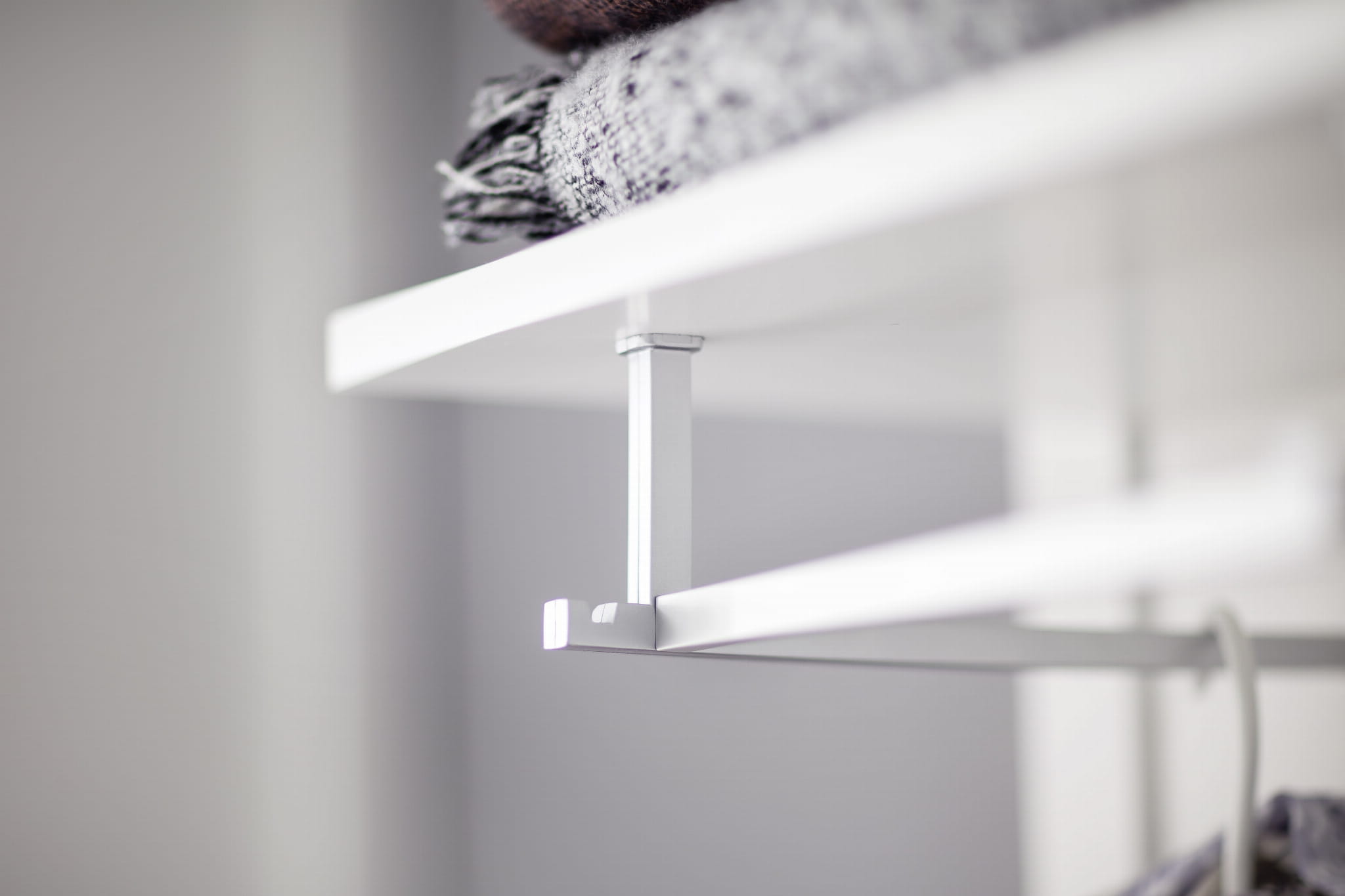Wieszak jest dedykowany do korytarzy i przedpokoi. Prosty design kolekcji zapewnia mnóstwo wspaniałych aranżacji. Biel mebli została przełamana srebrnymi uchwytami. Kolekcja OLE zaprojektowana została tak, aby jej tradycyjny charakter był ponadczasowy, a przy tym funkcjonalny, ponieważ białe meble pasują do każdego wnętrza i każdego koloru ścian. Wieszak posiada także półkę, która jest wygodnym miejscem do przechowywania czapek i szalików.