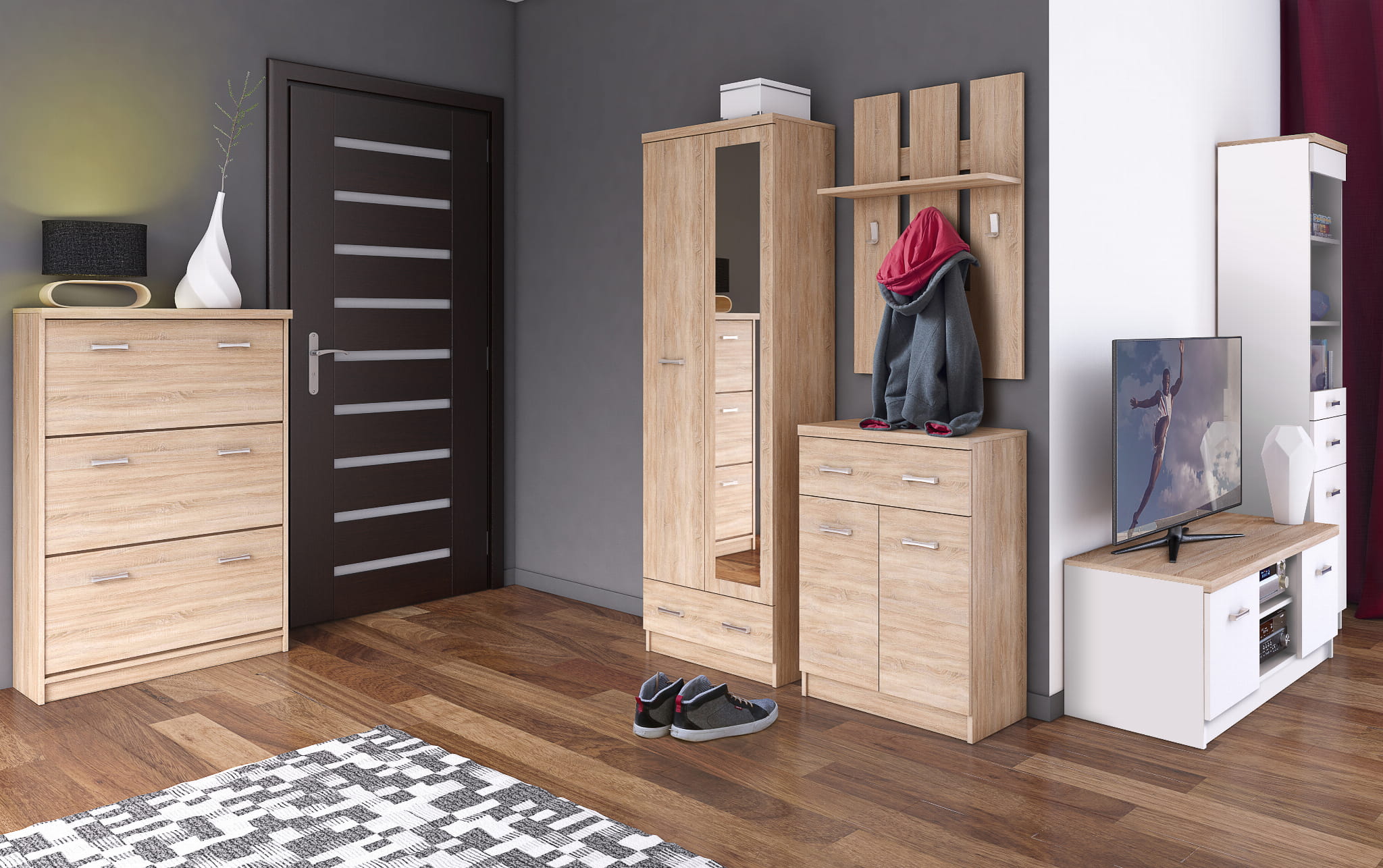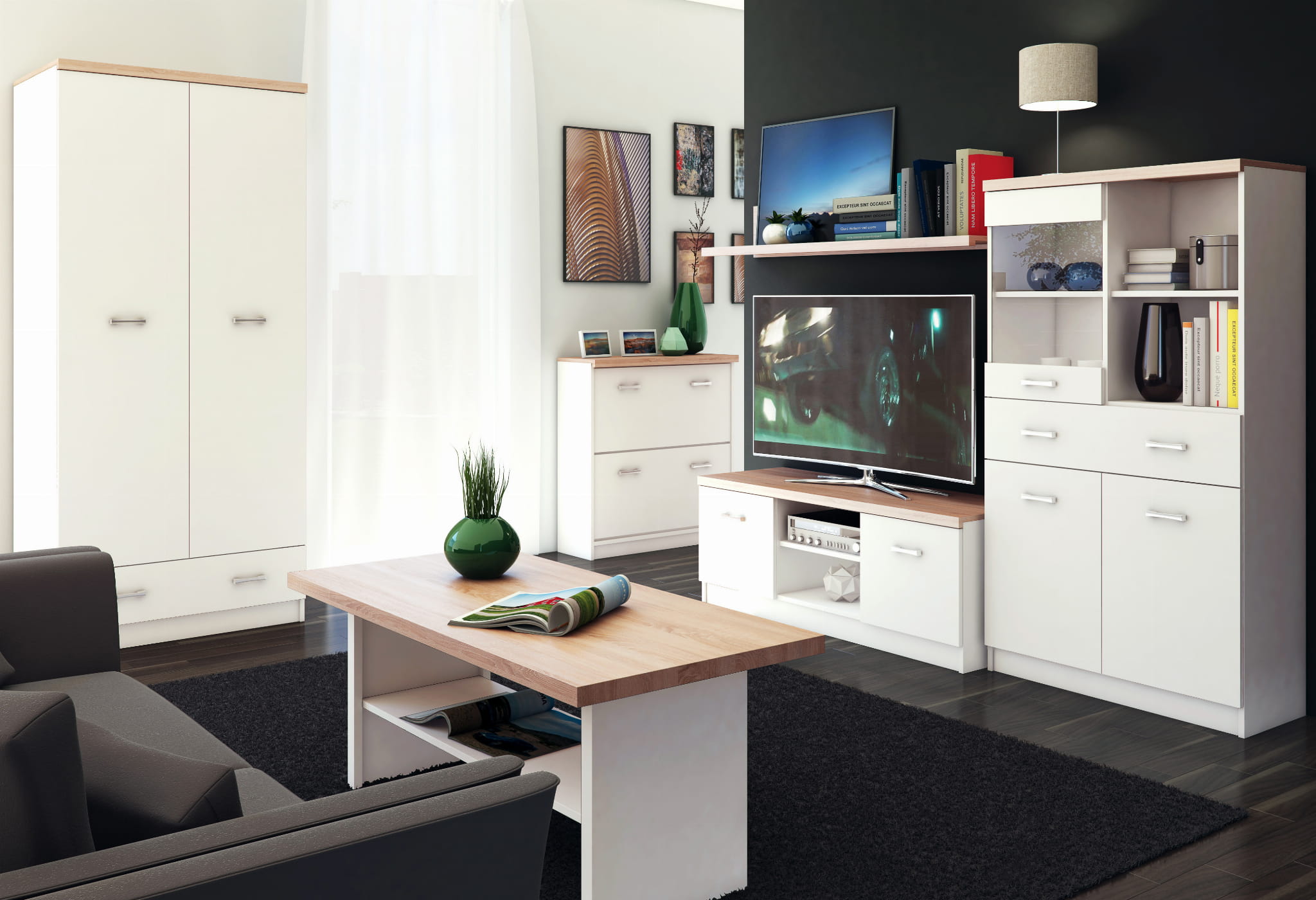 Dostępny jest w dwóch wersjach kolorystycznych – dąb sonoma oraz biały w połączeniu z blatem imitującym drewno.