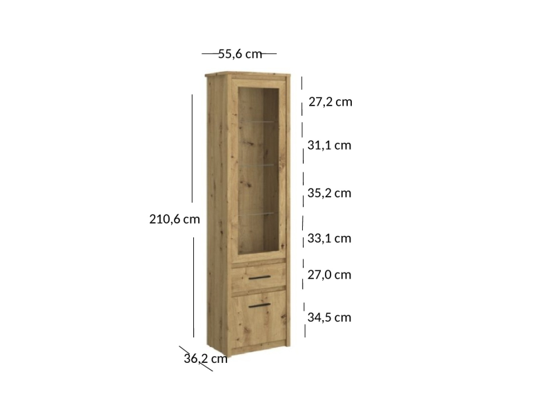 Witryna 1d1w1s dąb artisan, kolekcja Ayson