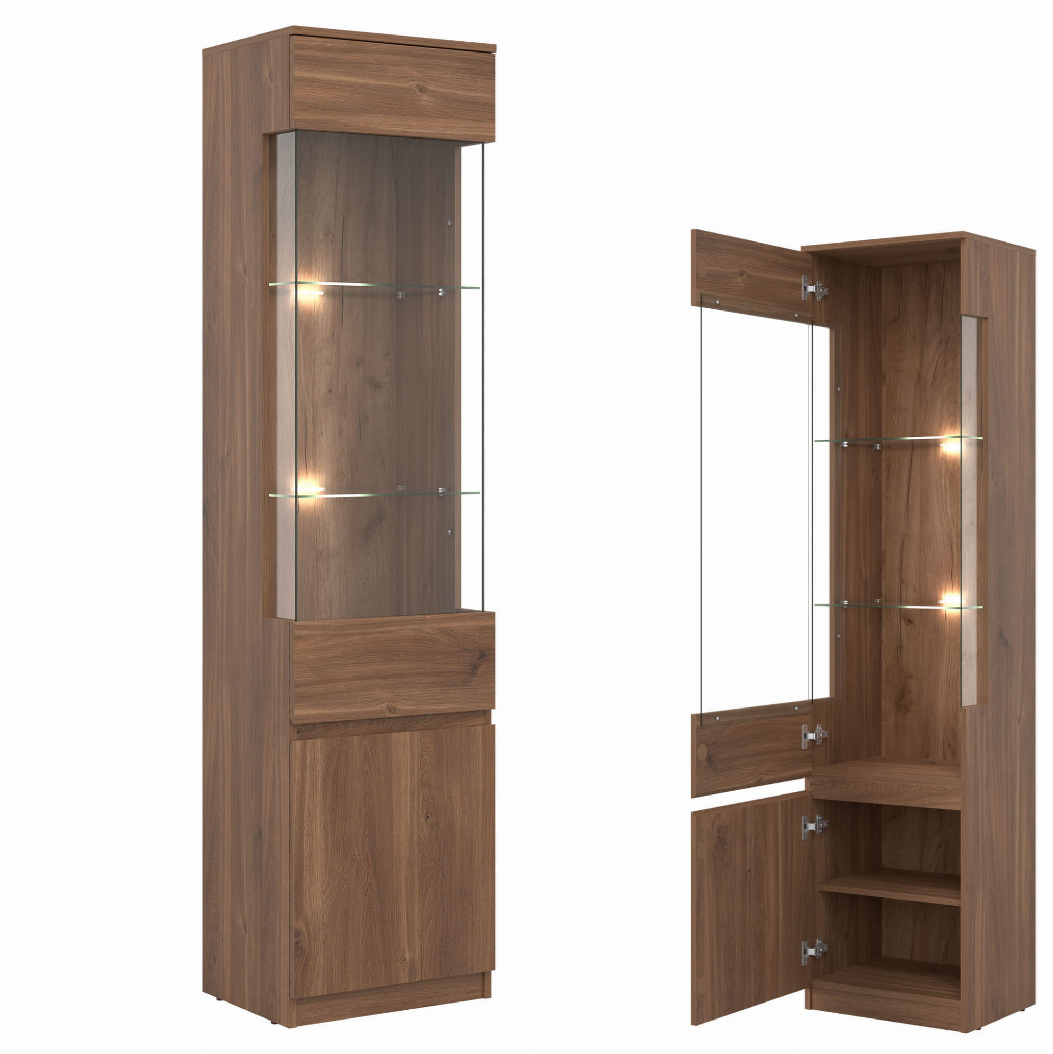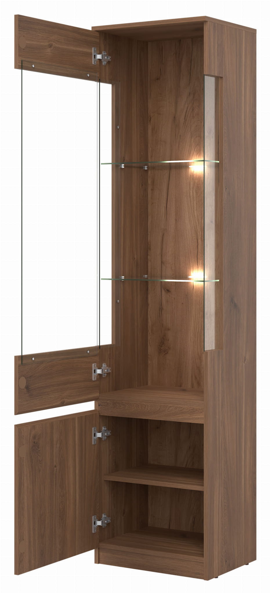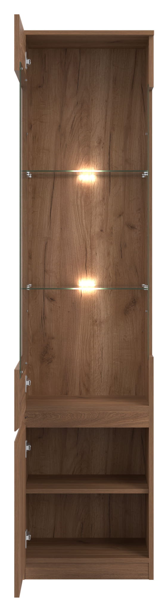 Dwie szklane półki można doposażyć w zestaw oświetleniowy, dostępny za dopłatą.