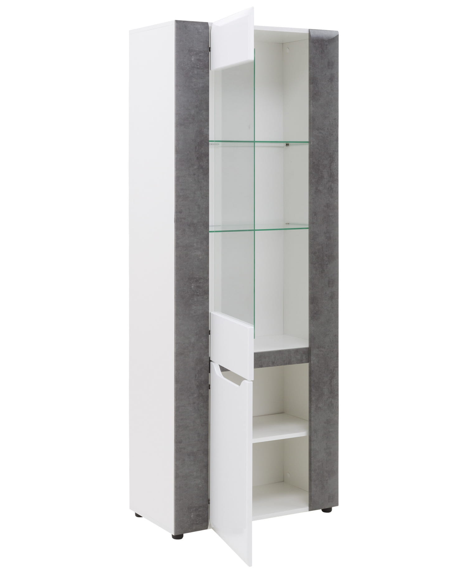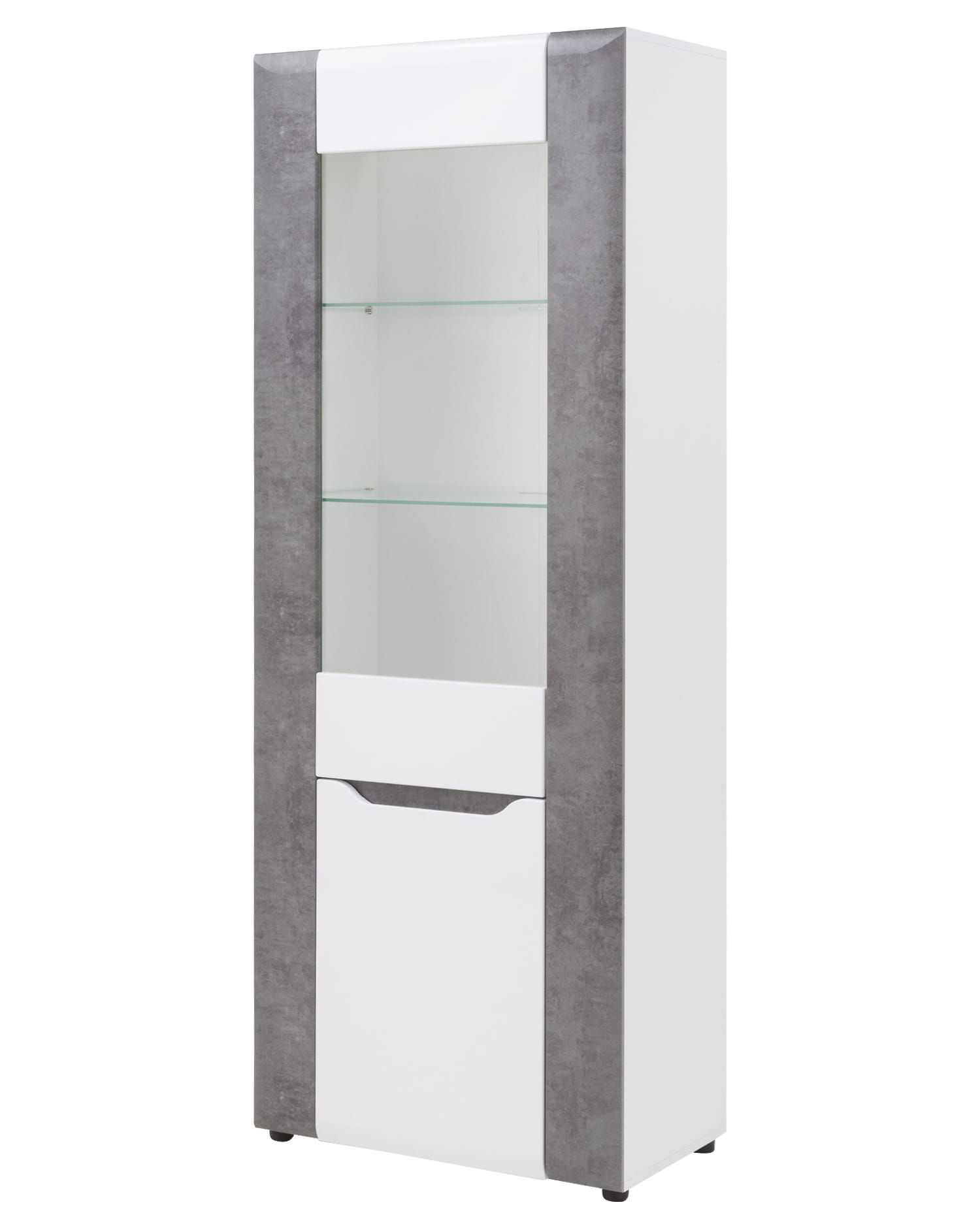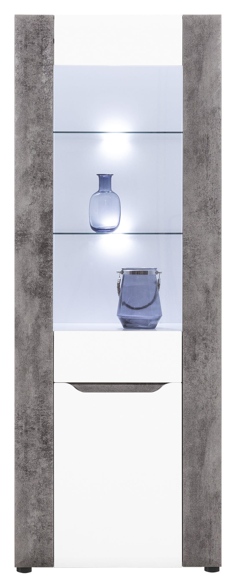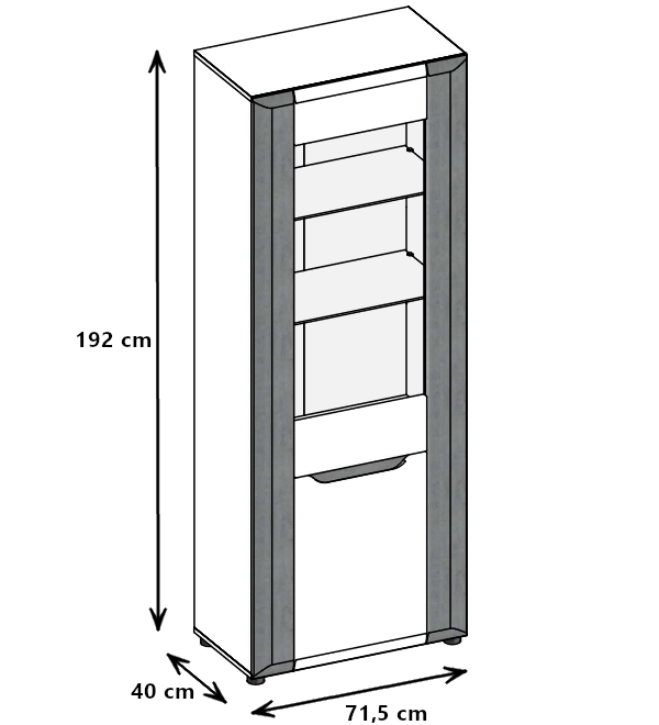 BRANDO B5 przykuwa wzrok kolorystyką łączącą biel z odcieniem betonu, która nadaje konstrukcji szyku oraz niebanalnej klasy. Natomiast wyjątkowym akcentem rozświetlającym wnętrze jest wykończenie frontu na wysoki połysk, co dobrze komponuję się w zestawieniu z innymi dekorami, tworząc ogromne możliwości aranżacyjne.