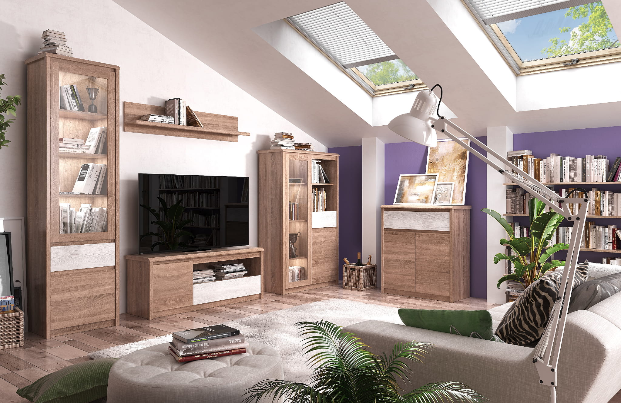 + Kolekcja jest w naturalnym odcieniu dąb sonoma, który został rozświetlony dodatkami w kolorze sosna canion.