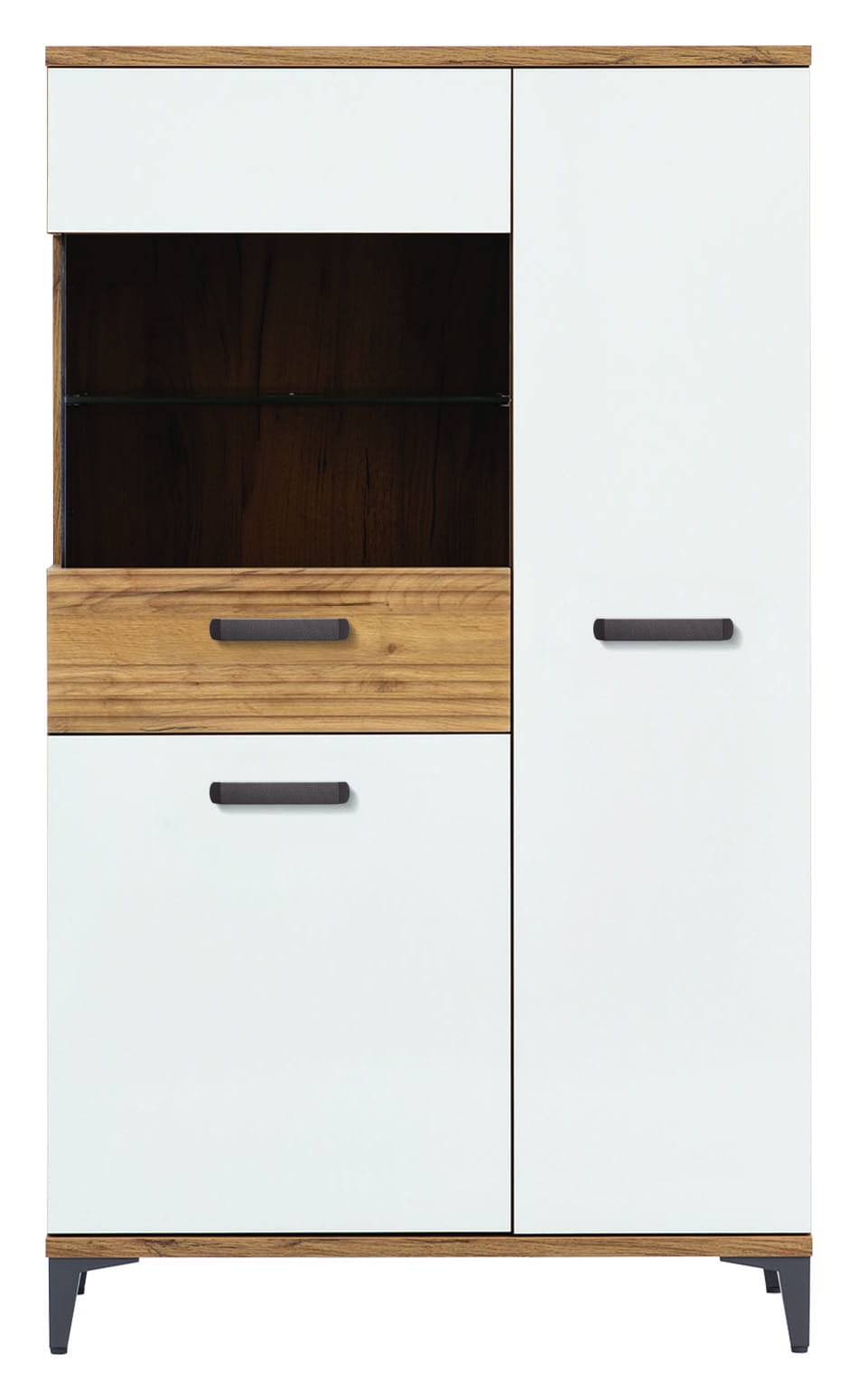Witryna szklana dąb biała połysk Kredens SNOBI SB6