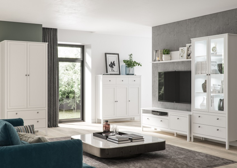 Witryna to wielofunkcyjny mebel, który może stać się wygodną biblioteczką, miejscem na ciekawe dekoracje lub przestrzenią na dokumenty biurowe. Prosty design kolekcji zapewnia mnóstwo wspaniałych aranżacji. Witryna z kolekcji OLE idealnie sprawdzi się w aranżacji pomieszczeń takich jak: pokój dzienny, salon, przedpokój, sypialnia, gabinet, home office lub pokój młodzieżowy. Zamykane półki gwarantują mnóstwo miejsca na przechowywanie. Klasyczna forma kolekcji OLE i uniwersalny kolor matowej bieli dają szereg możliwości na zaaranżowanie niemal każdego pomieszczenia w Twoim domu. Charakterystyczne dla tej kolekcji ramkowe fronty idealnie odnajdą się we wnętrzach w angielskim i skandynawskim stylu.