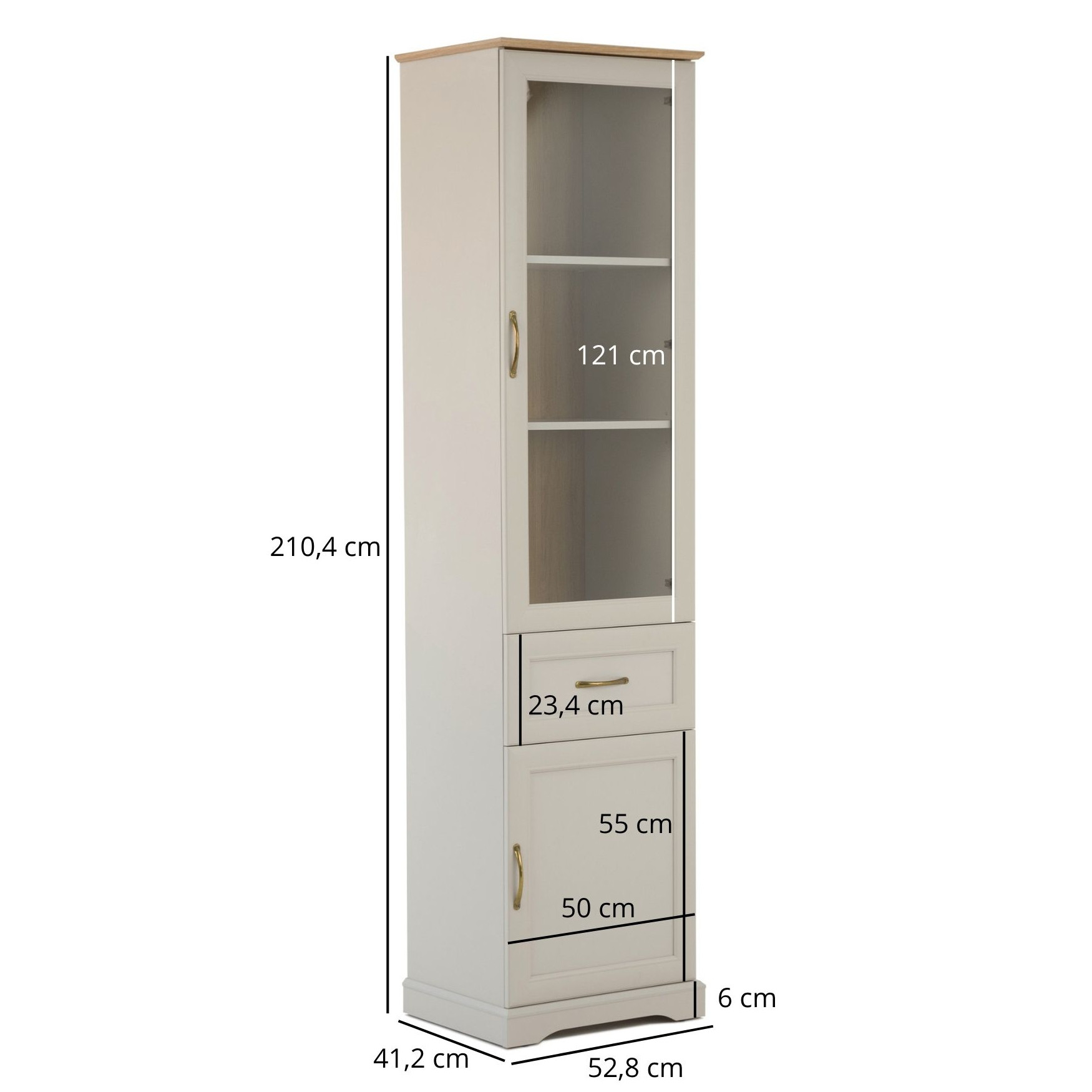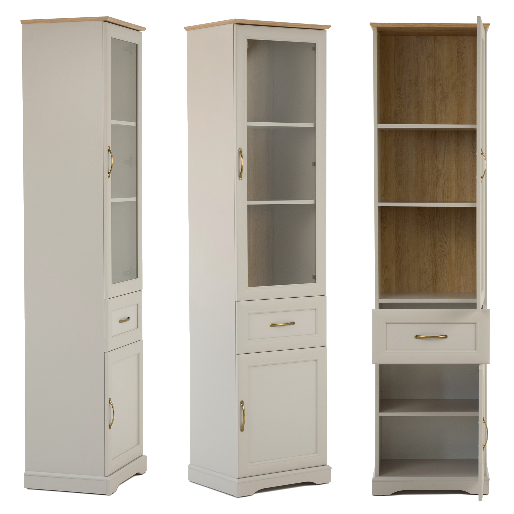 Witryna wysoka z szufladą Szafka oszklona Ramiak Dąb harbor Kaszmir SORETTO